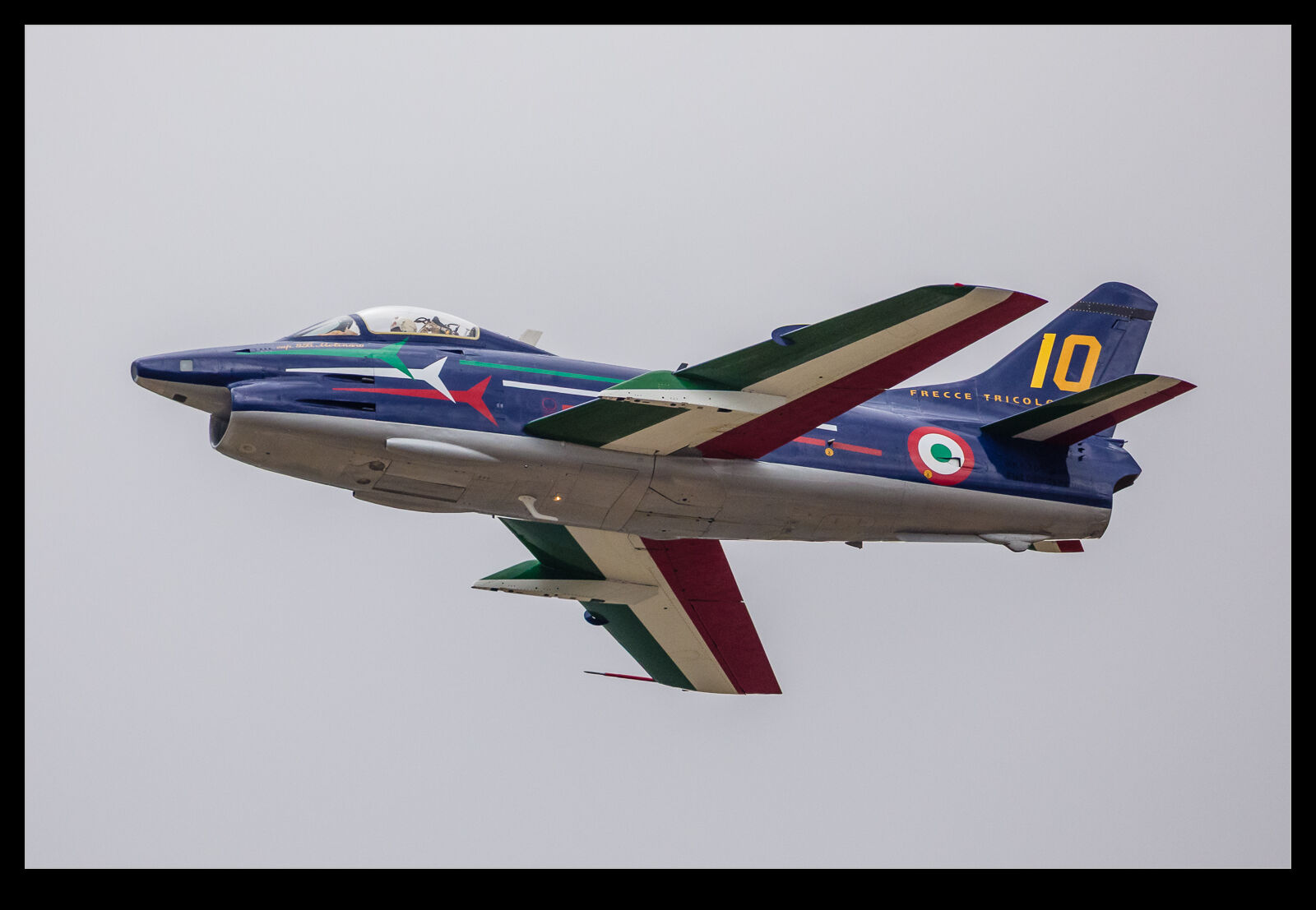 For as long as I have been going to air shows, the Italian Air Force’s display team, the Frecce Tricolori, has been flying the MB339. I knew that they used to fly the Fiat G91 but that was before my time. I have seen some G91s at museums marked up as Frecce jets but, whether they were actually previously in the team or just painted up in the same way that there are a ridiculous number of Hornets in Blue Angels colours, I didn’t know.