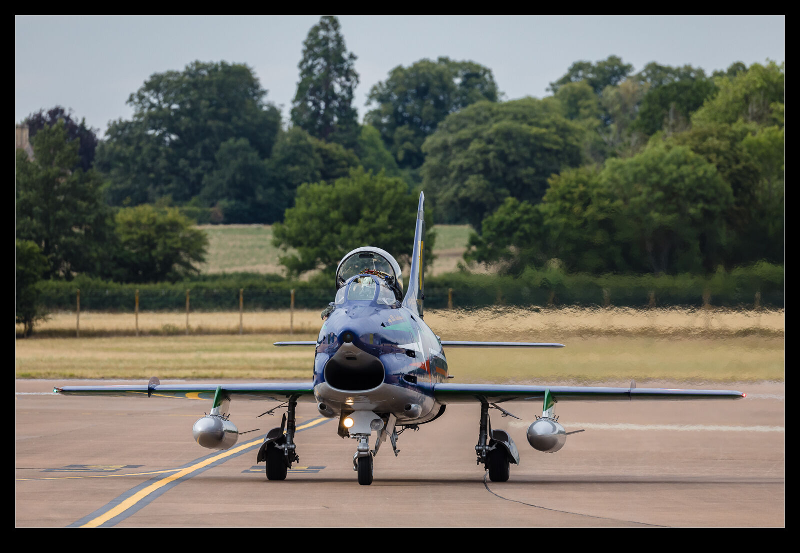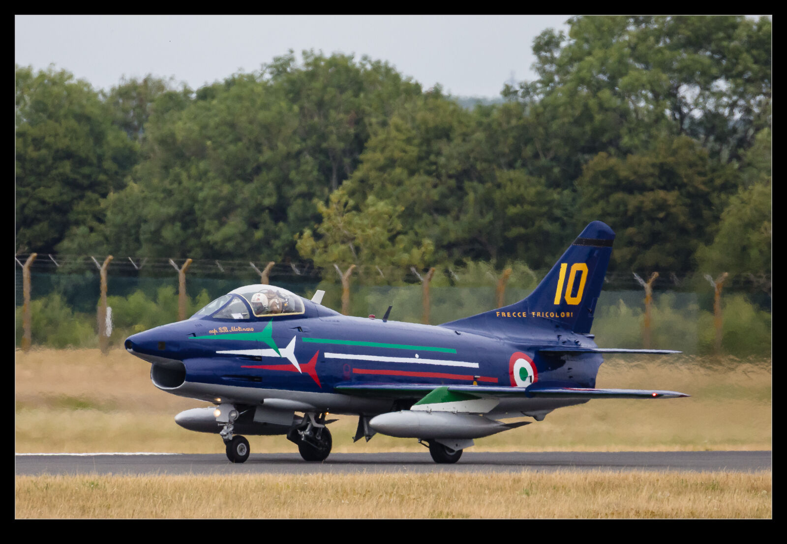 With the team getting ready to transition to the M346 before too long, it was an interesting comparison to have RIAT include a recently restored G91 display in Frecce colours. I think the original team jets has a pointed nose rather than the camera port on the majority of production aircraft, so I doubt this is an original team aircraft, but it is still something special to see. It did fly in formation with the M346 which is a nice before and after idea although not with the current team which would have been even better. Here is a selection of images of it from across the weekend of RIAT.