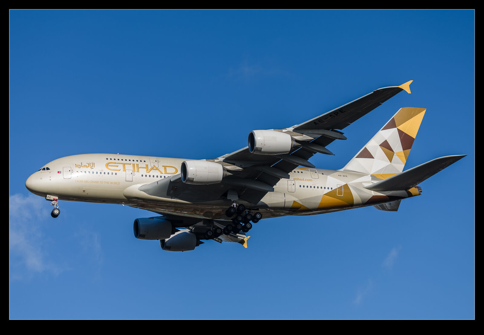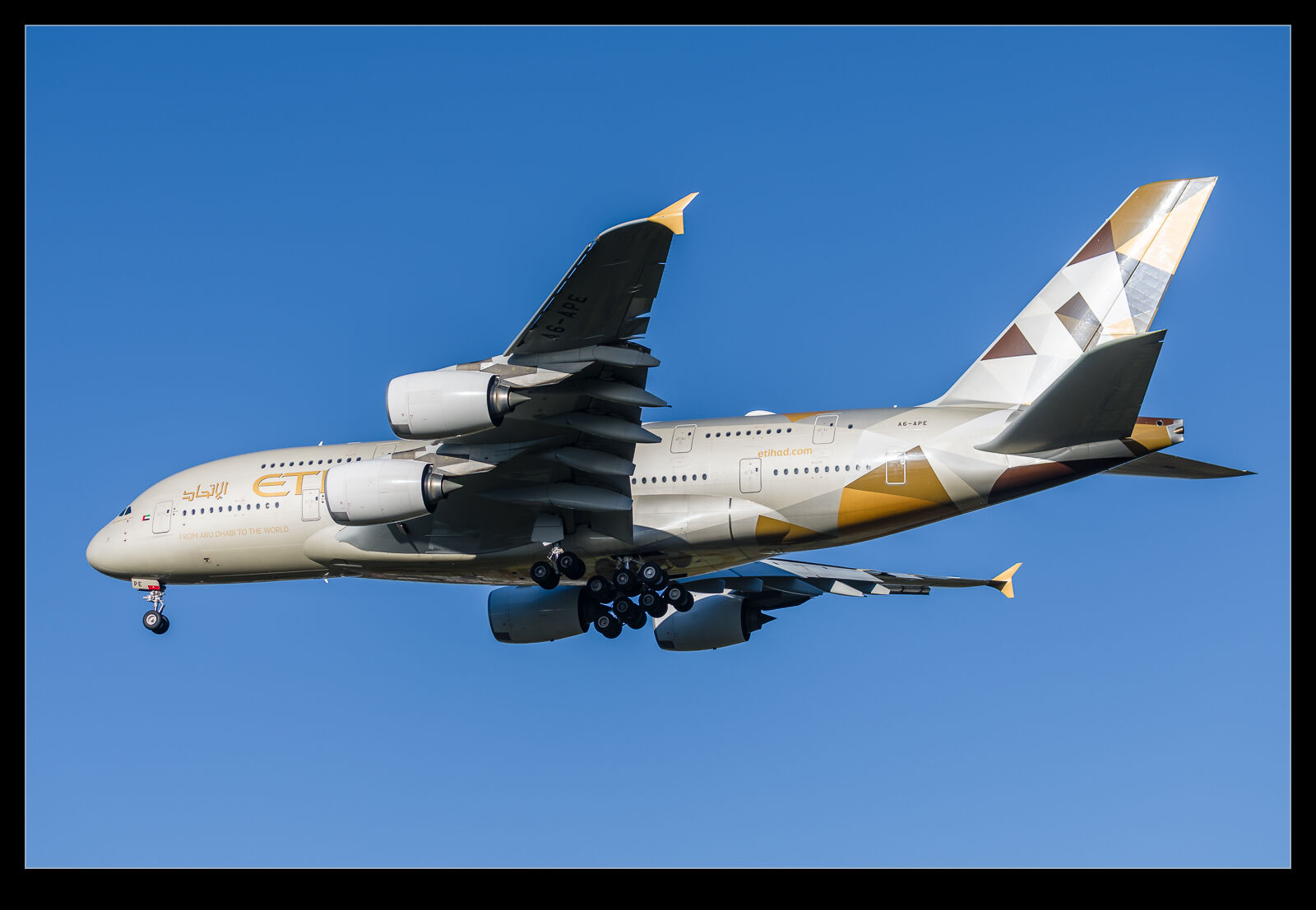 I have seen a ton of them over the years, but Etihad was an operator whose fleet I had never photographed until I moved back to the UK. At first this was only from a distance too. When I saw one was coming in a little after the American Airlines special, I decided to wait for it. In an era of white planes, a colourful plane is so welcome, and I find Etihad’s livery very appealing. Here is a great looking jet.