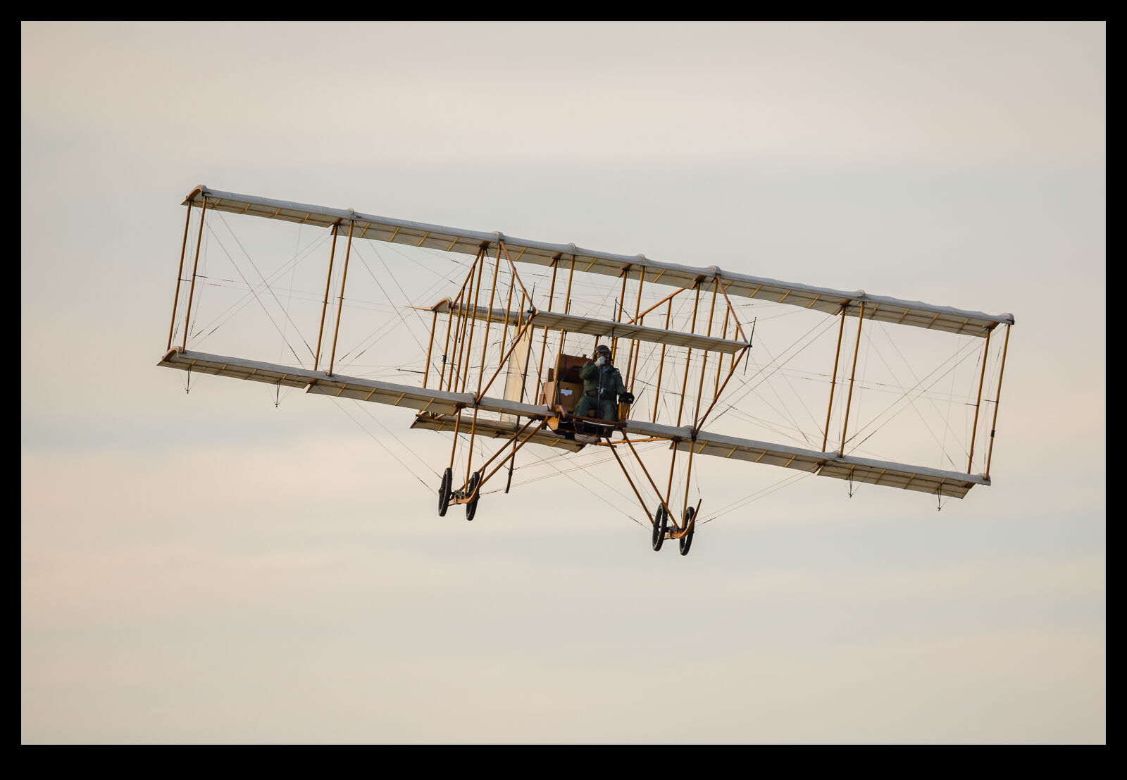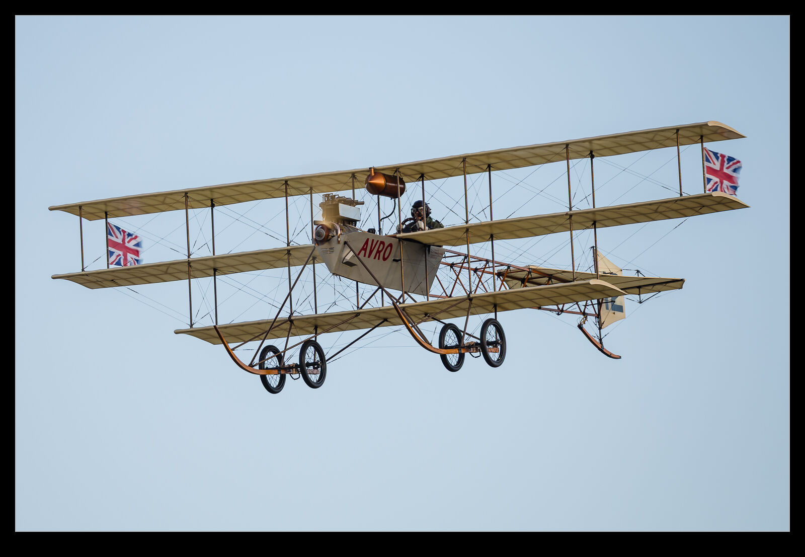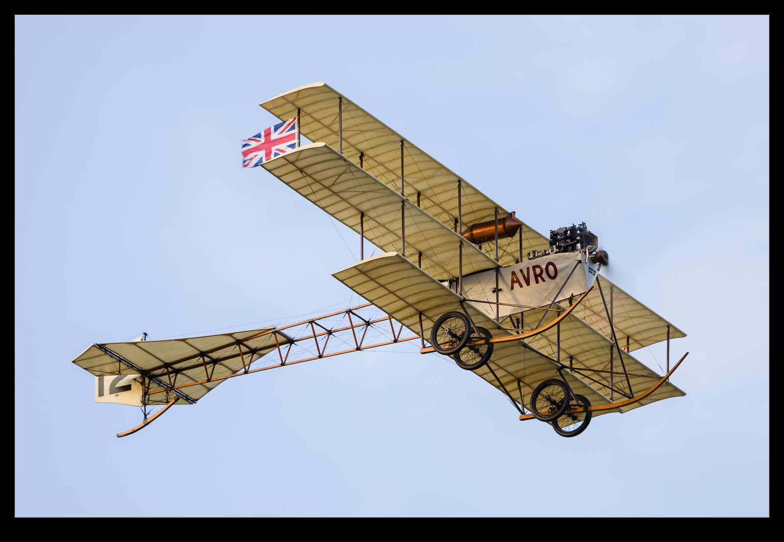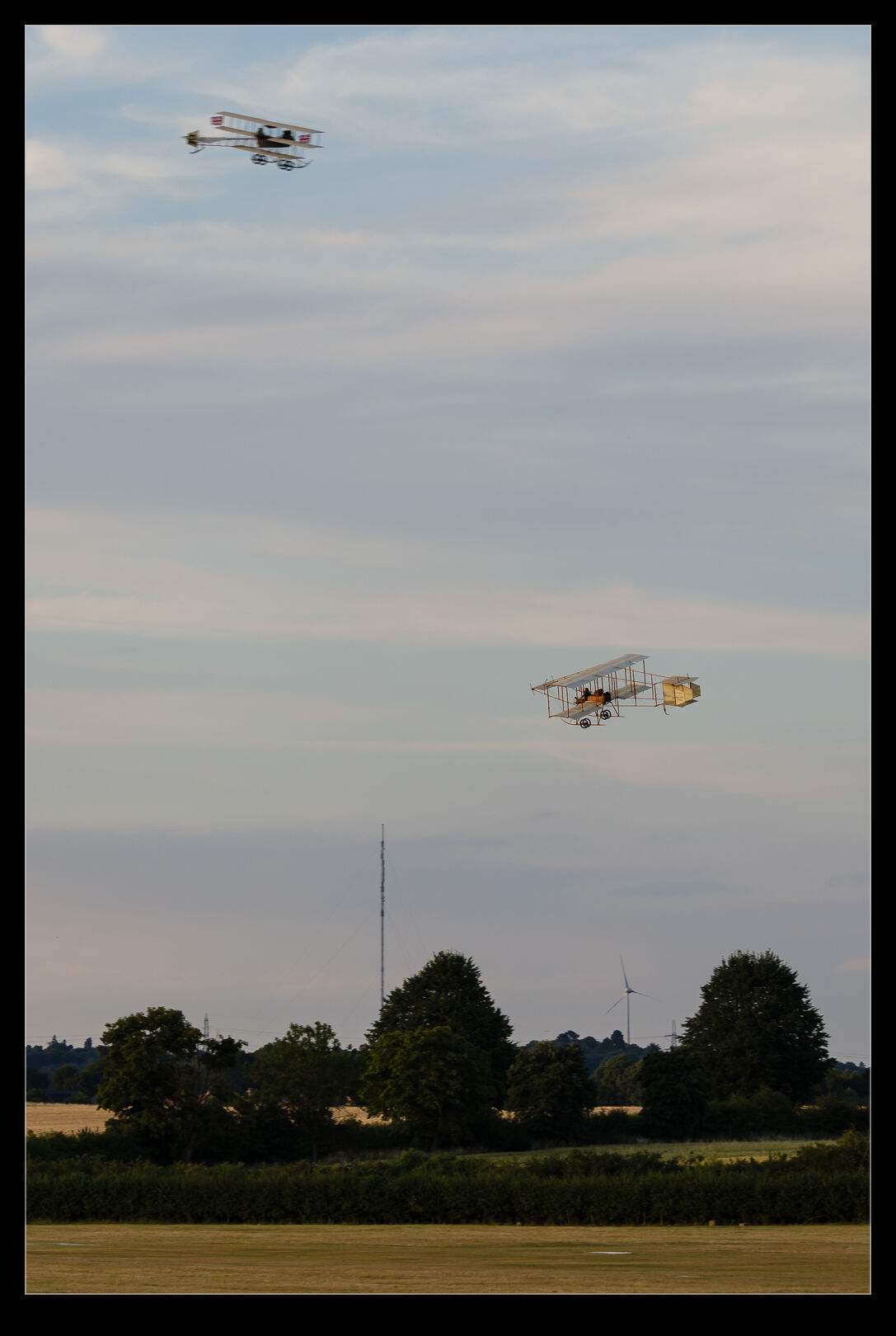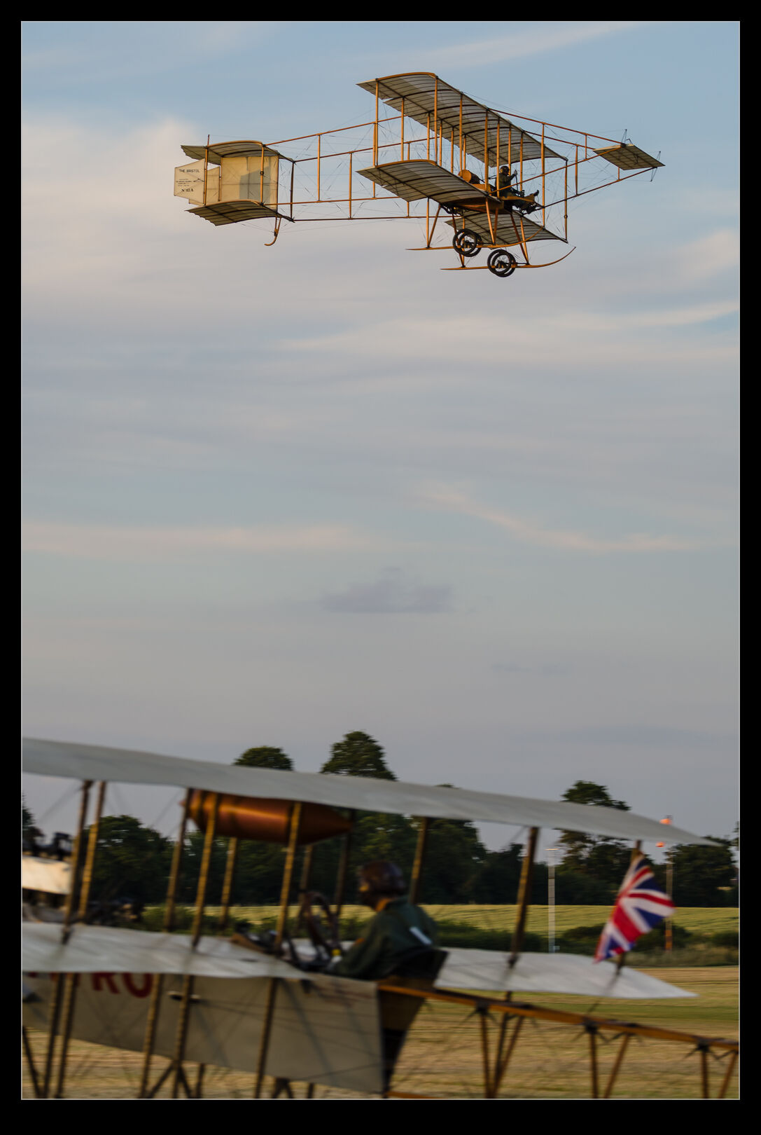 The great conditions for Shuttleworth’s Festival of Flight Sunday show meant we got to see a lot of the more fragile types fly. Later in this section of the show, we had the Bristol Boxkite and the Avro Triplane take to the sky. I know they are both replicas but that doesn’t make them any less rare or vulnerable. They flew around for quite a while and, since they are not speedy aircraft, they can keep it all close in front of the crowd. The light was definitely at its peak during their display. Here are a few shots of the two of them putting on a show.
