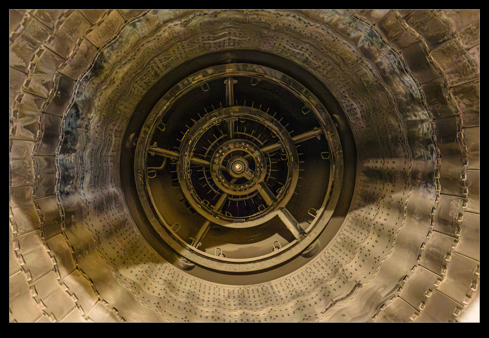 An example of the engine is on display at the RAF Museum in Hendon. I was first interested by the patterns of the flameholders in the afterburner so took some shots looking straight up the jet pipe. Then I moved around to the side. It is so easy to see where the original engine ends and where the added afterburner starts. It does not look like an integrated design whatsoever. It worked well enough although the redesign of the fuselage to accommodate it resulted in significantly increased drag. Top speed was reduced as was climb performance. One upside was that the Spey was a turbofan so, in the original ground attack role the Phantom had in the RAF, it actually improved low level fuel burn. It probably wasn’t so welcome once they moved across to the air defence role, though.