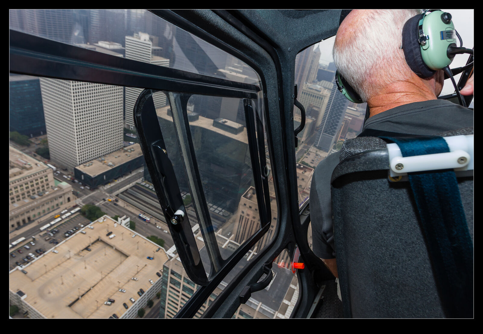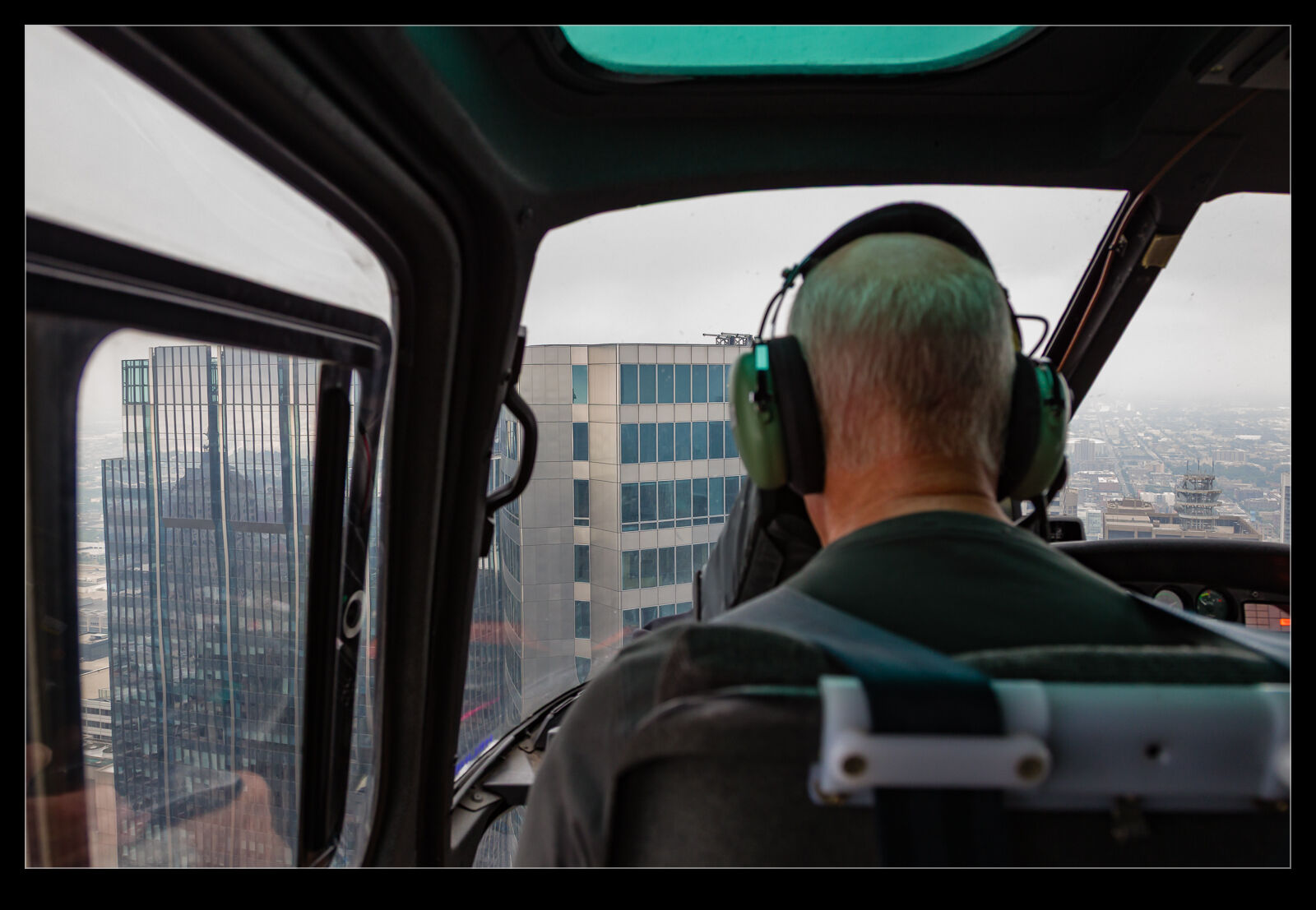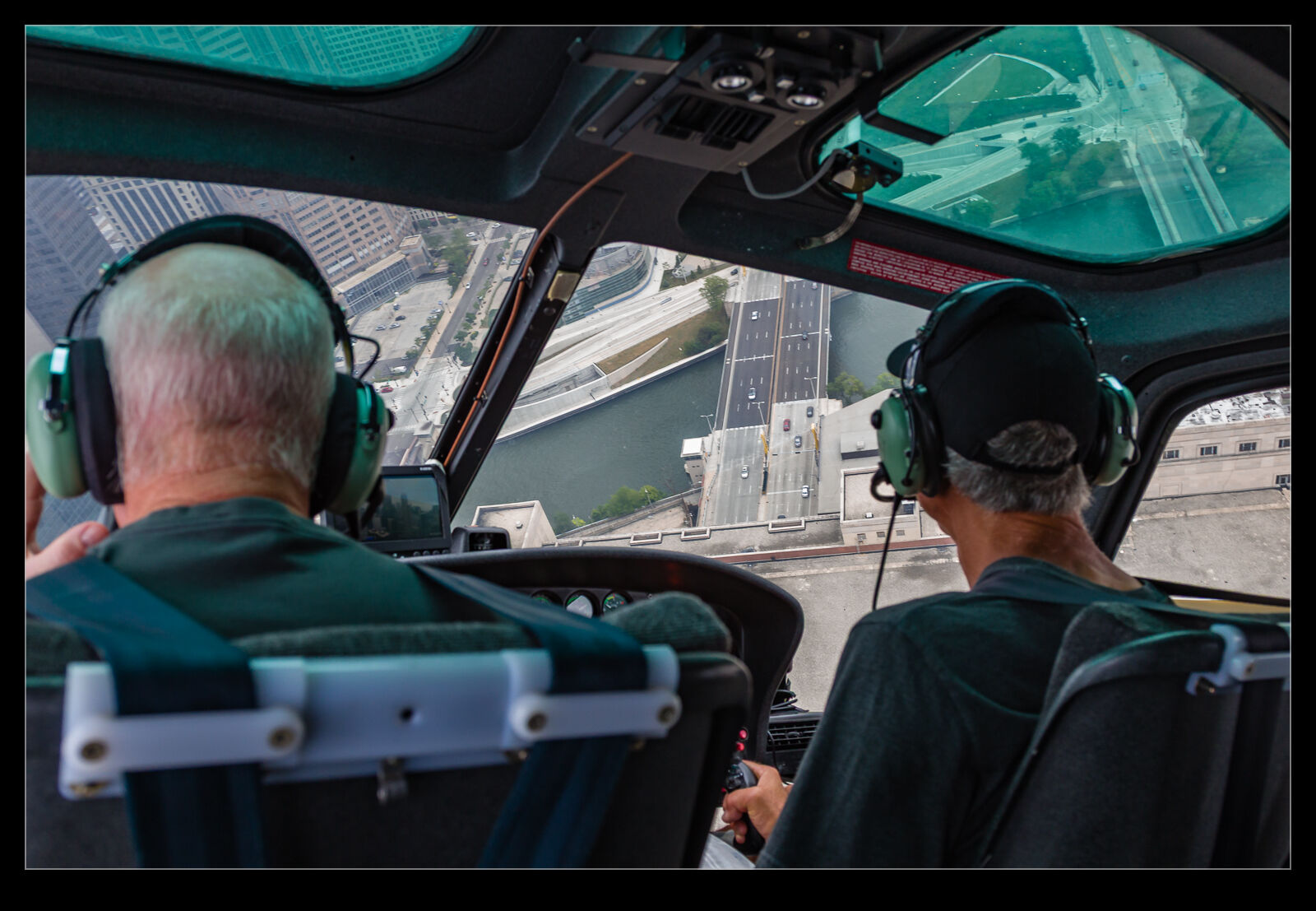 Alan was flying whilst David Nowell, the cinematographer was in the left seat controlling the camera installation. They had worked together many times and had a very slick relationship in the air. A producer was next to me in the rear seats. We left Midway and headed into Chicago where we flew around the city a little before landing on the south side. The film crews have clearance to operate at low level and in between the buildings. It is quite a stunning place to be as you slide between the skyscrapers.