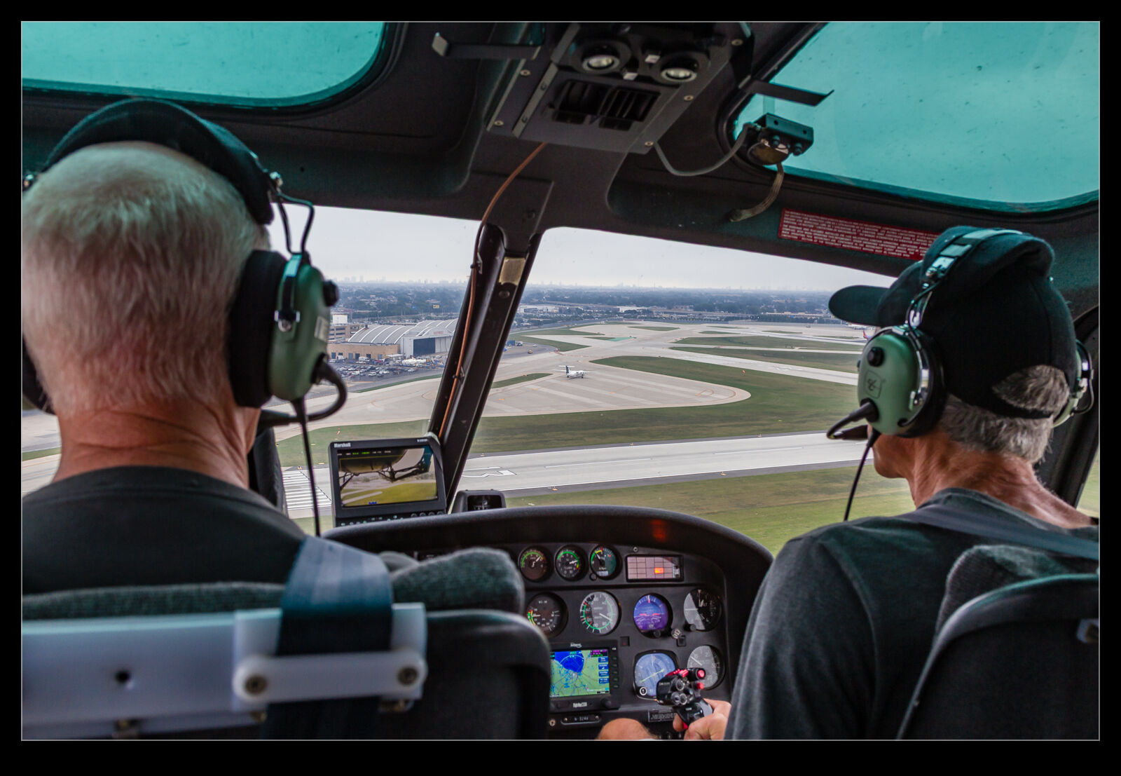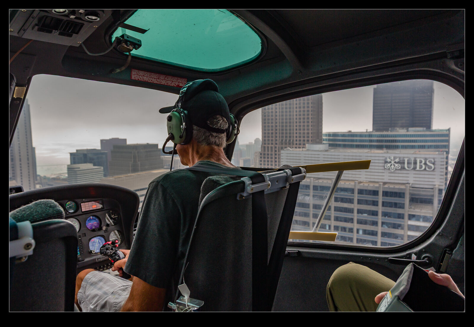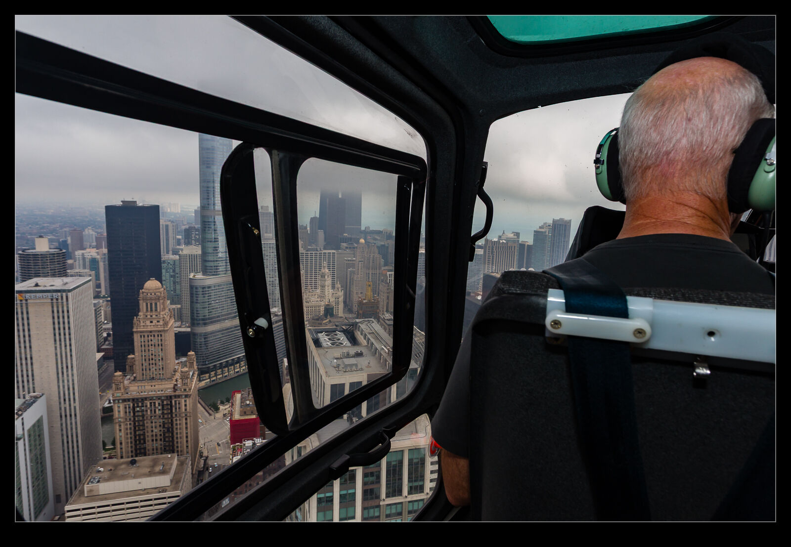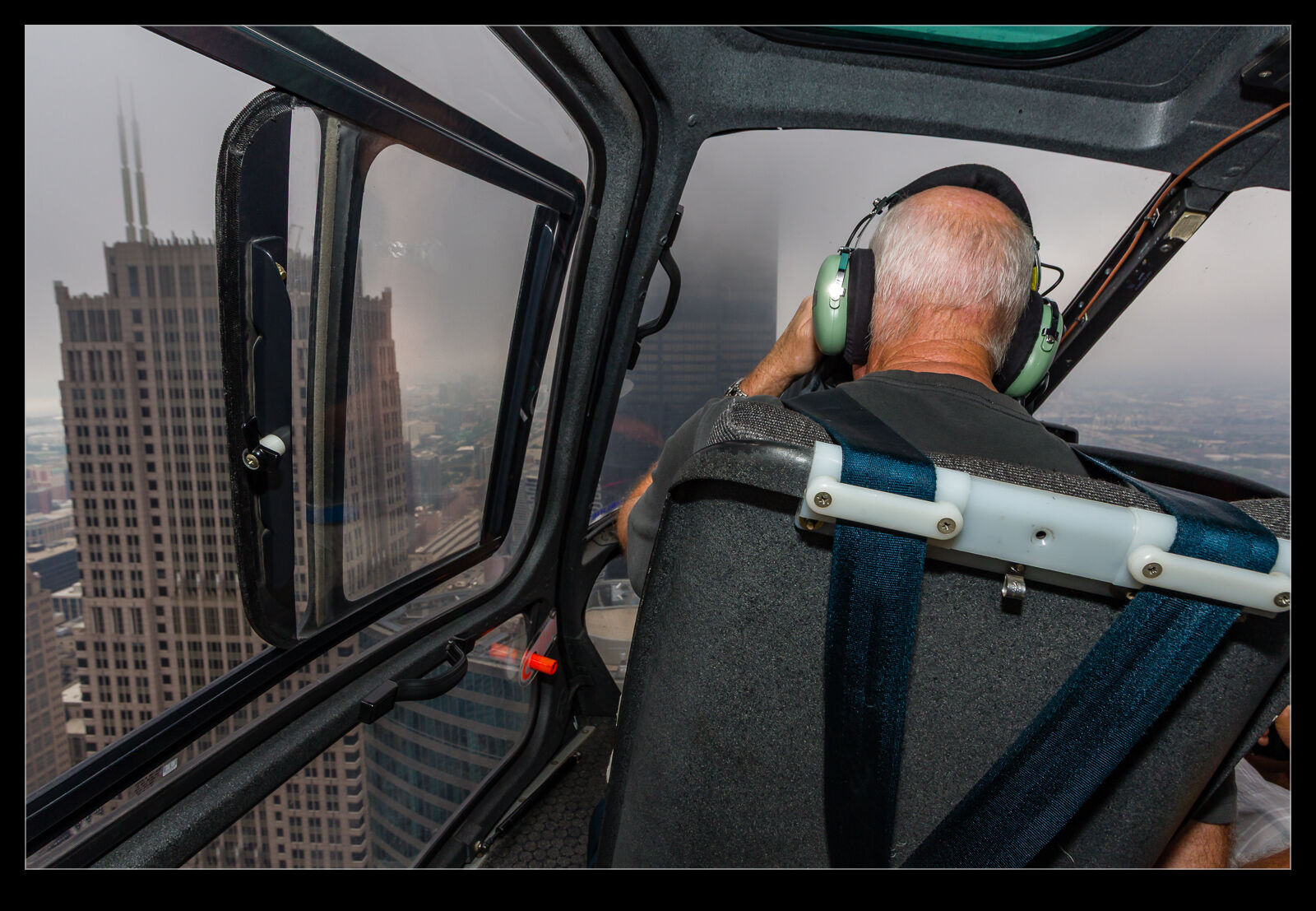 Alan was flying whilst David Nowell, the cinematographer was in the left seat controlling the camera installation. They had worked together many times and had a very slick relationship in the air. A producer was next to me in the rear seats. We left Midway and headed into Chicago where we flew around the city a little before landing on the south side. The film crews have clearance to operate at low level and in between the buildings. It is quite a stunning place to be as you slide between the skyscrapers.