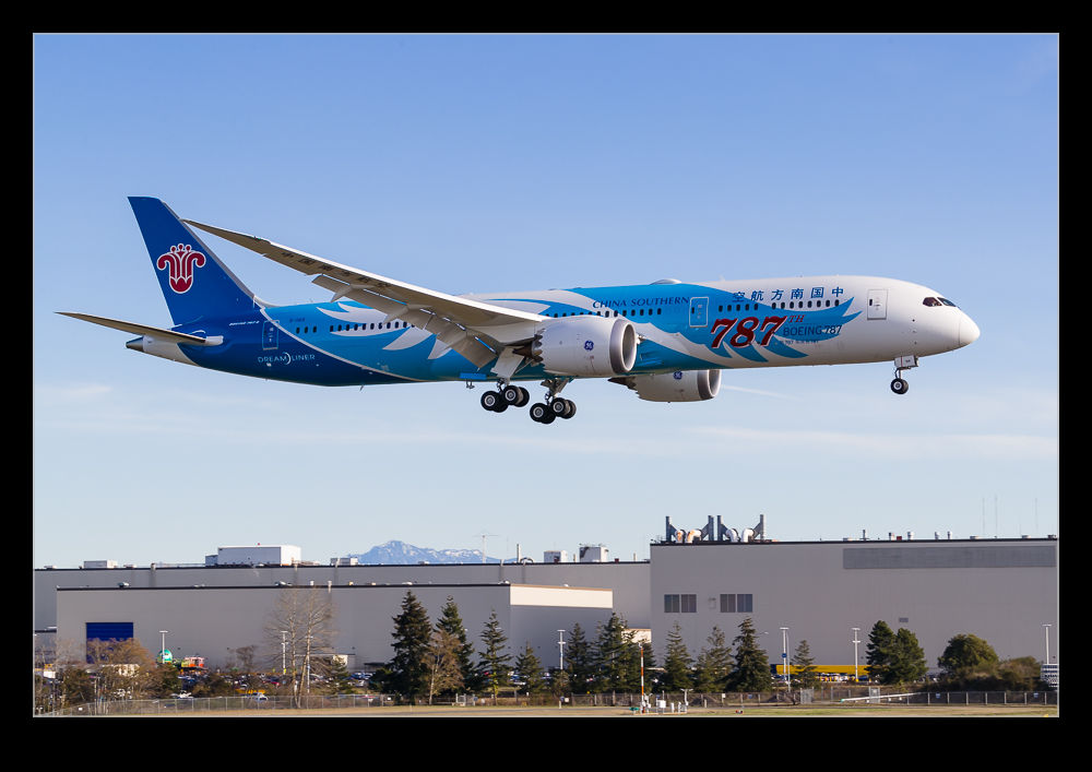 AE7I9121.jpg ← Previous Next → The 787th Boeing 787 lands back at Paine Field after a test flight. The RAT is deployed as is usual for test activities. It will soon be delivered to China Southern.
