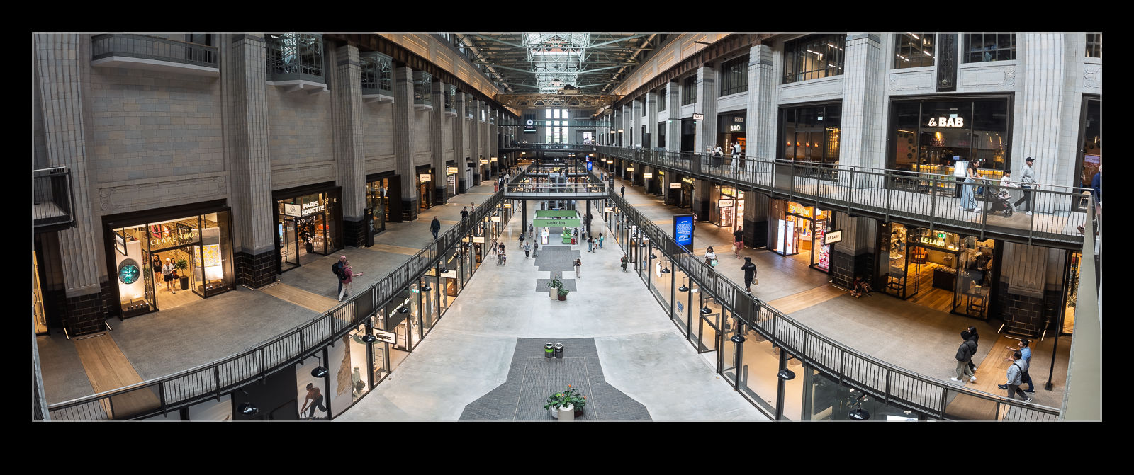 The building is very imposing, and a lot of the architectural features have been preserved well. The halls that now hold the shops still include features like cranes and control consoles to show a bit of the heritage of the building. What is original and what is a replica I don’t know but I like the effort.