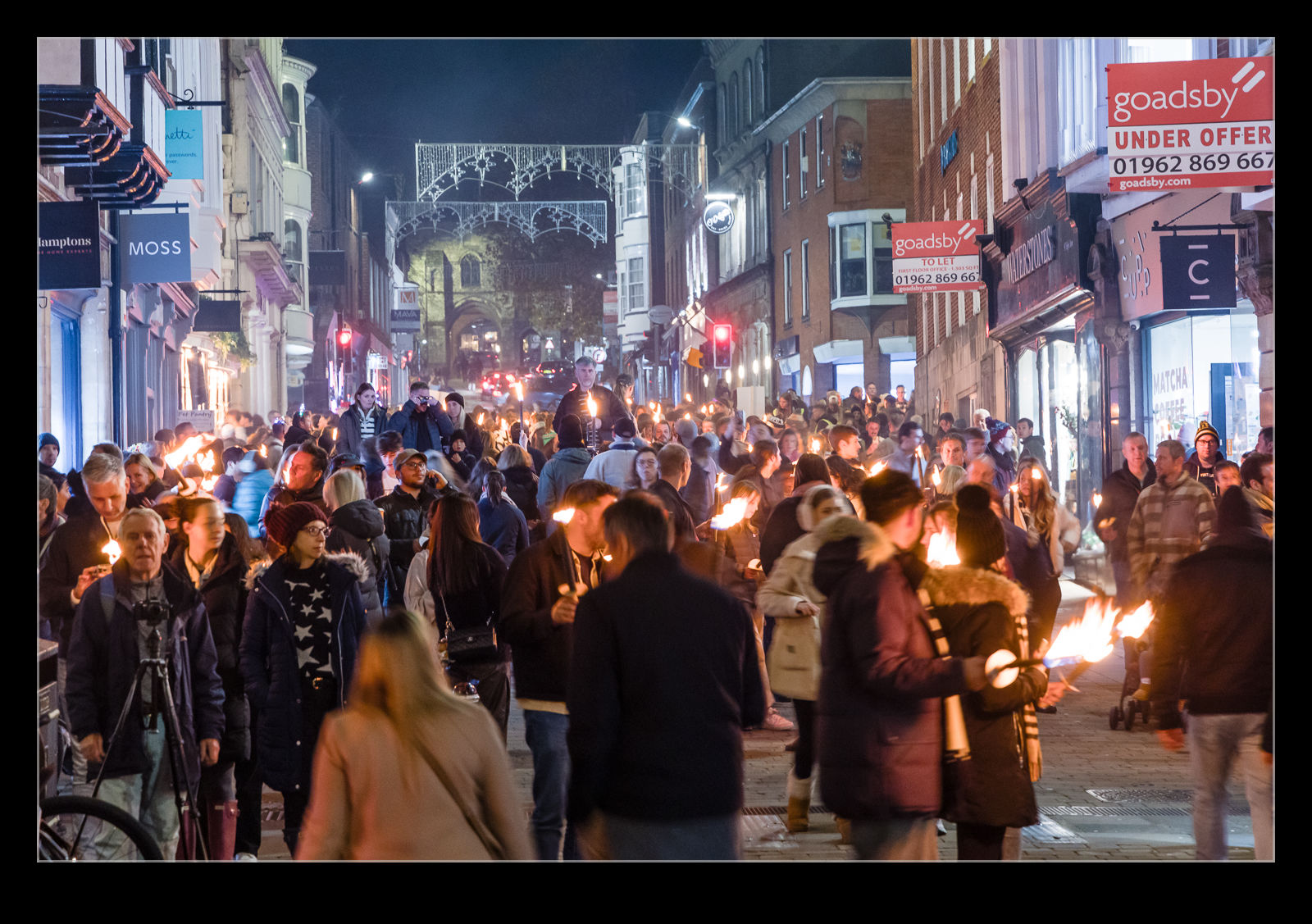 It was quite funny watching how many people had lit their torches as soon as they got them. Many of them were pretty much burnt out before the parade got underway. Probably a bit disappointing but I’m sure it wasn’t the end of the world. The parade came up through the centre of Winchester and there were loads of people there both taking part and watching.