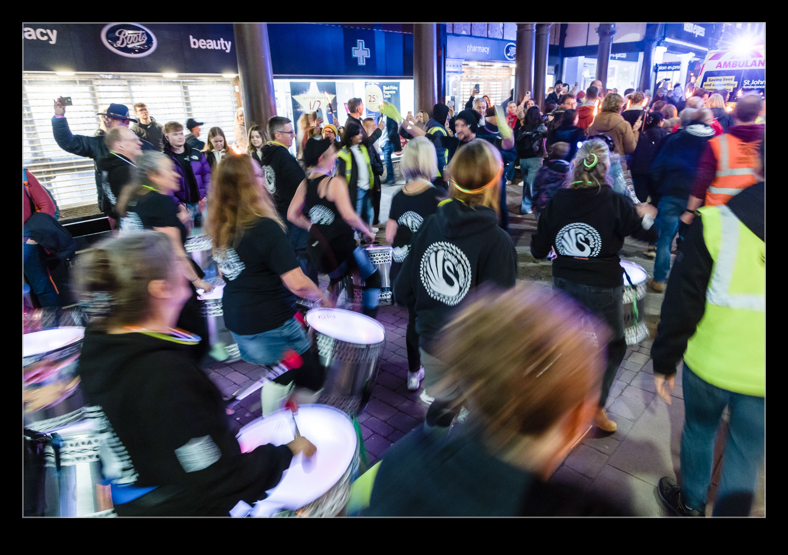 The mayor was at the front of the parade, and a drum band was close behind. They brought a load of energy to the proceedings. I was playing around with lower shutter speeds to try and represent the movement of the group which meant many totally useless shots. Hopefully some of these give an impression of how things were.
