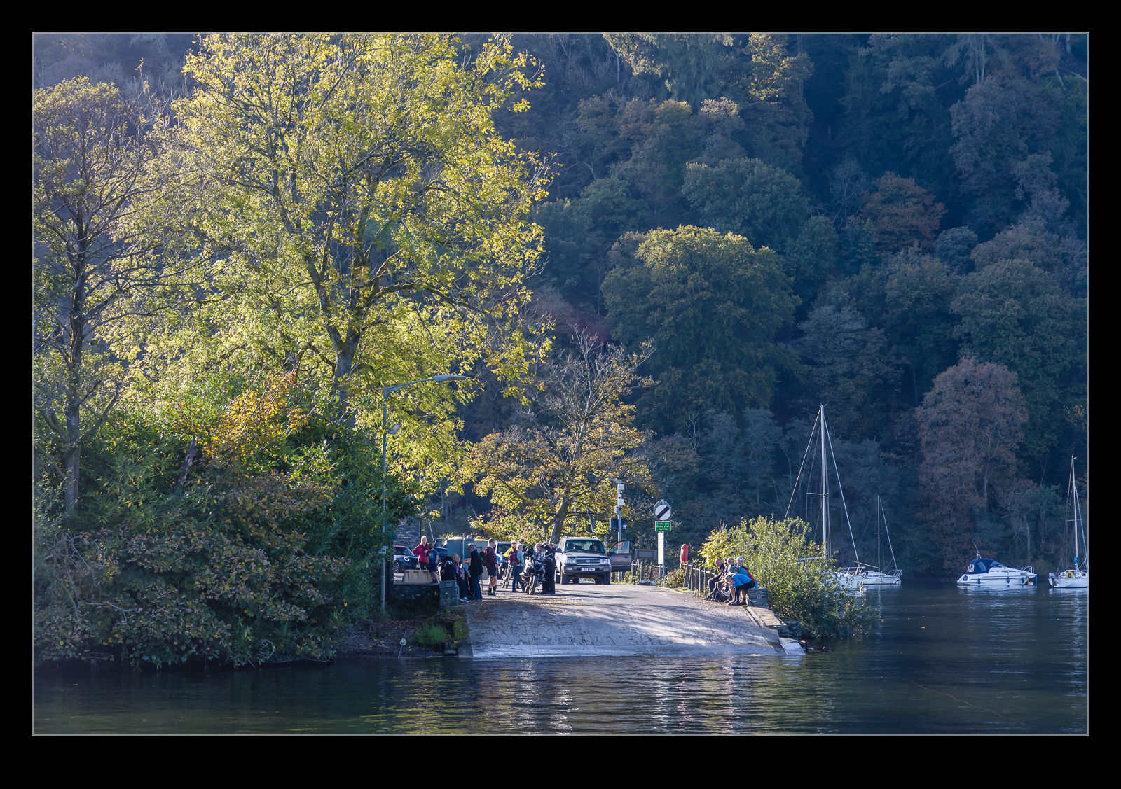 Our Lake District trip included reliving some of the things we used to do a lot when we lived up that way. After lunch at an old haunt, we headed to Hawkshead. One way to get there is to take the ferry across Lake Windermere. I have many happy memories of making this crossing in the past and was glad to do it again. The ferry is connected to a cable that spans the lake. It is a bit like the chain ferry between Cowes and East Cowes on the Isle of Wight, but I don’t know whether the cable is just a guide or used to pull the ferry across. It is certainly smoother than a chain!