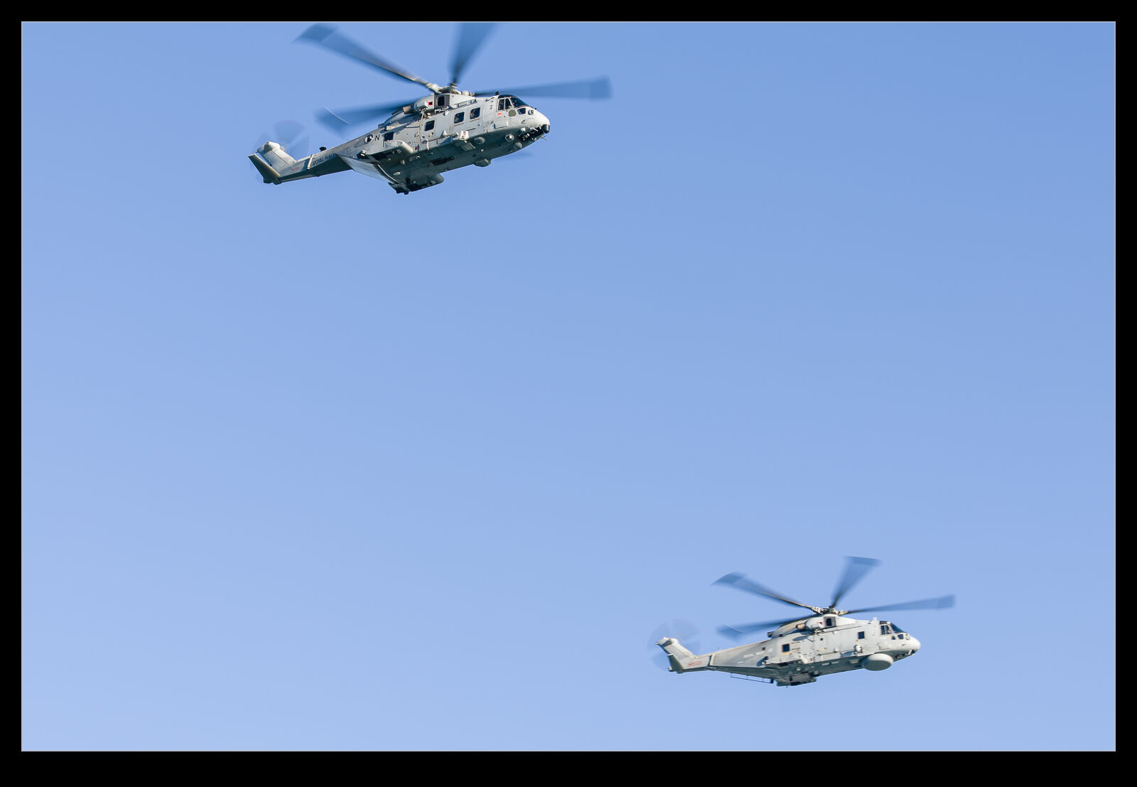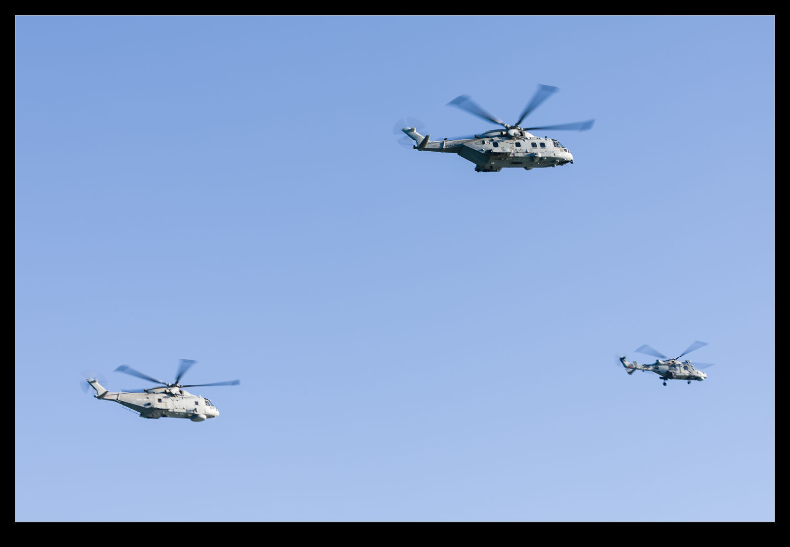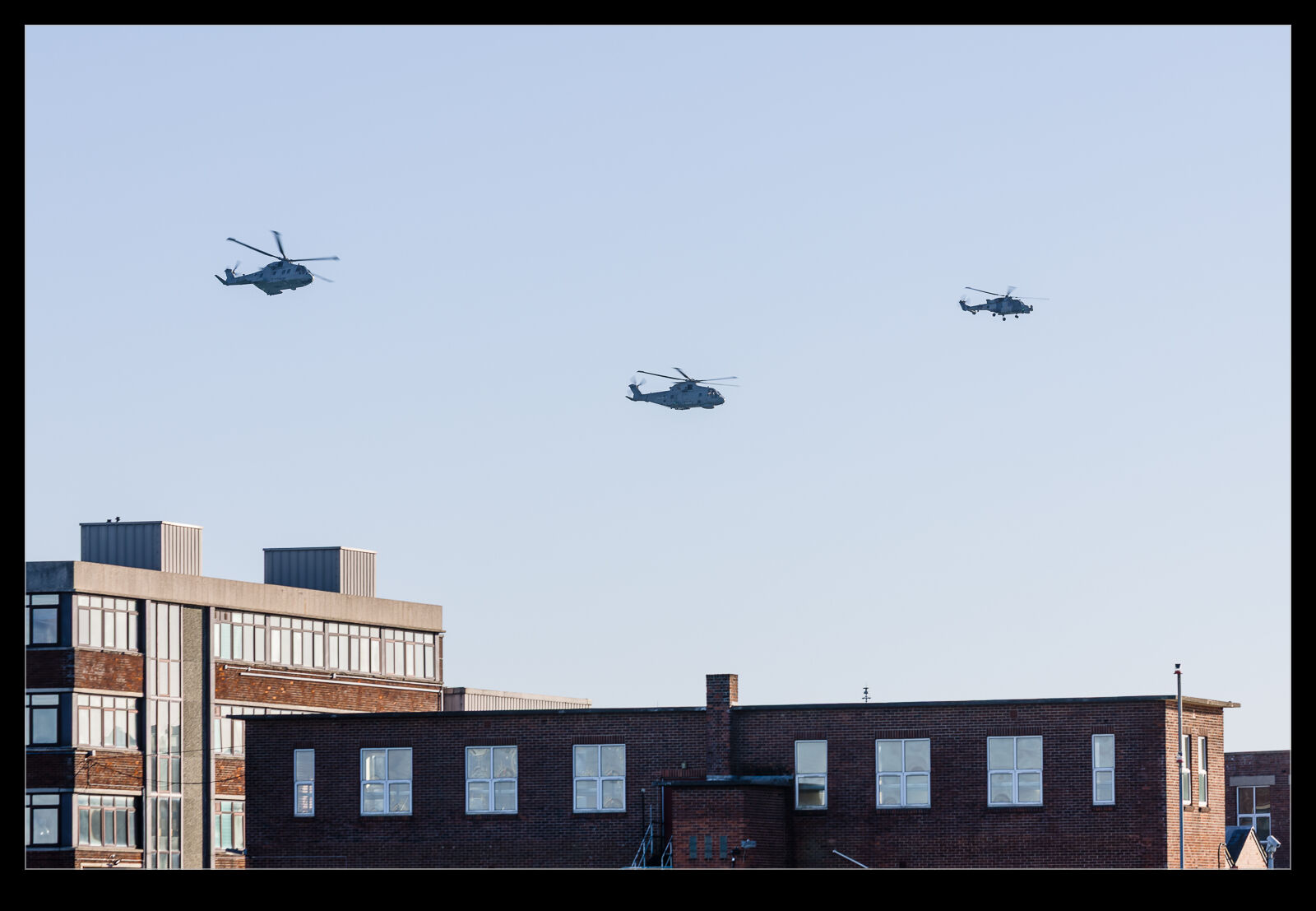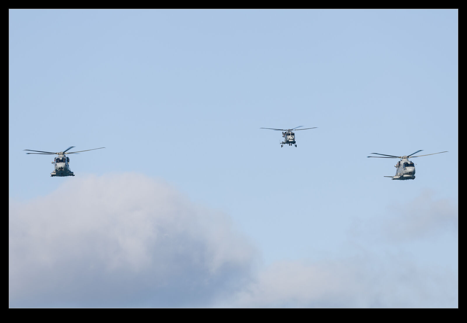 We would see them a bit from a distance as the manoeuvred around the ship and this allowed us to have a reasonable idea of where everything was at any point. Then, as the ship entered the harbour, the formation flew over the top to celebrate the return to home port. The Merlins then peeled off while the Wildcat hung around.
