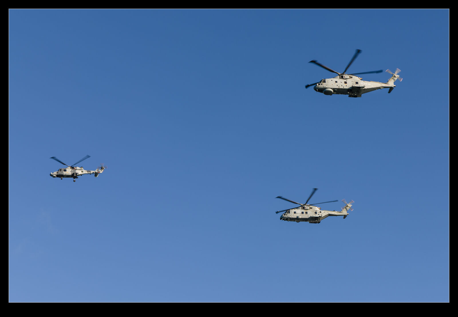 We would see them a bit from a distance as the manoeuvred around the ship and this allowed us to have a reasonable idea of where everything was at any point. Then, as the ship entered the harbour, the formation flew over the top to celebrate the return to home port. The Merlins then peeled off while the Wildcat hung around.