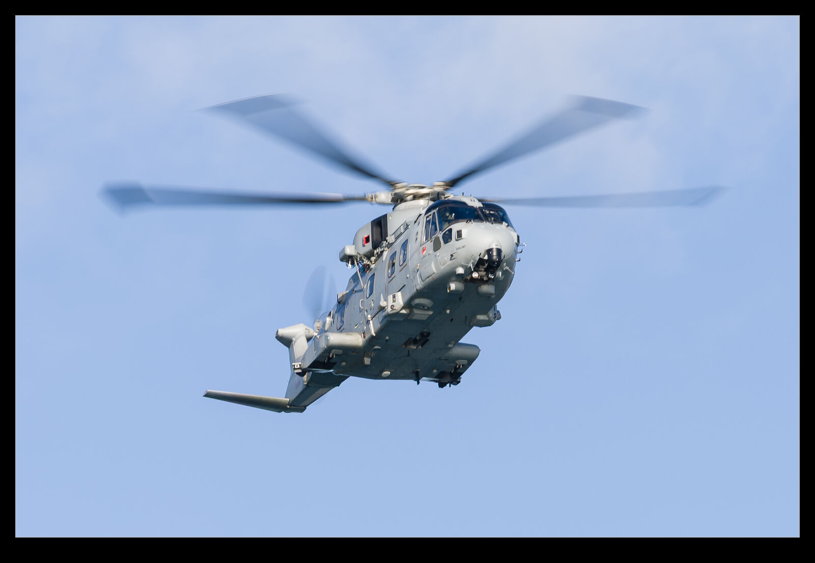 The arrival of the carrier strike group was the big theme of the day, but the Fleet Air Arm was going to support the process with a flyby. A pair of Merlins and a Wildcat were assigned to the role, and they were initially noted off Bournemouth as they joined up before heading to Portsmouth. As they came over Portchester, we could see them from where we were, and they flew up the harbour and over our location to head out and meet the carrier.
