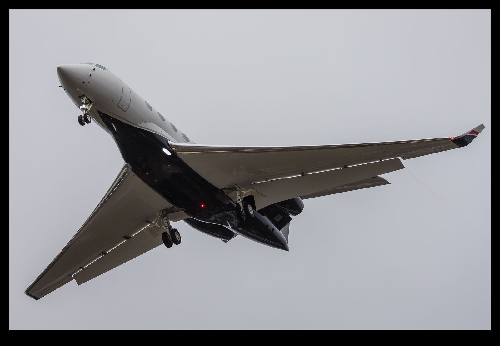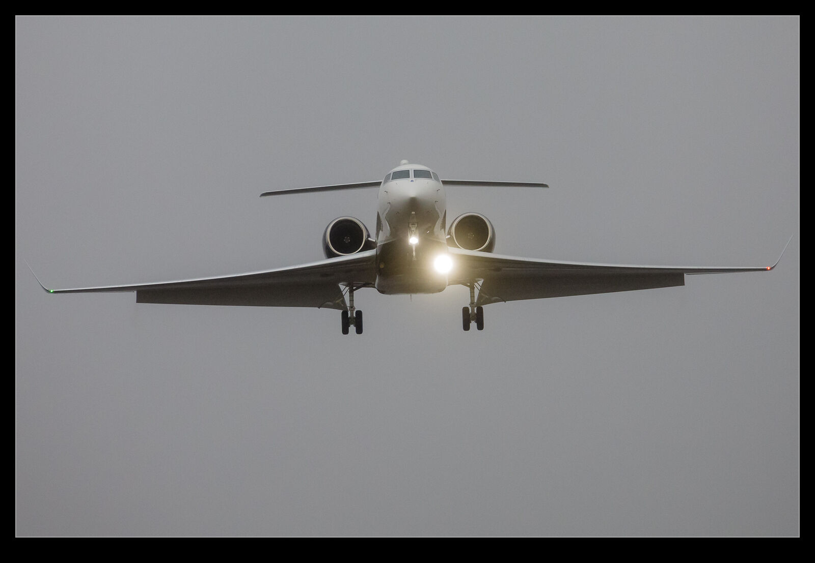 This G600 was coming into land at Farnborough while I was visiting. The conditions were far from ideal for photographing anything flying but I am not going to pass one up if the chance presents itself. I was close to the approach path so had an almost head on position. Not ideal but it would be fine. However, what struck me as I looked at the images afterwards was the flaps. Gulfstream has never impressed me with their wing designs. They always seem to have just gone with a larger wing to achieve whatever performance was needed and the flaps on all of their jets seem to be barn doors rather than some advanced design. It seems that the current generation of jets is no different. I guess it doesn’t matter enough to their sales so why bother?