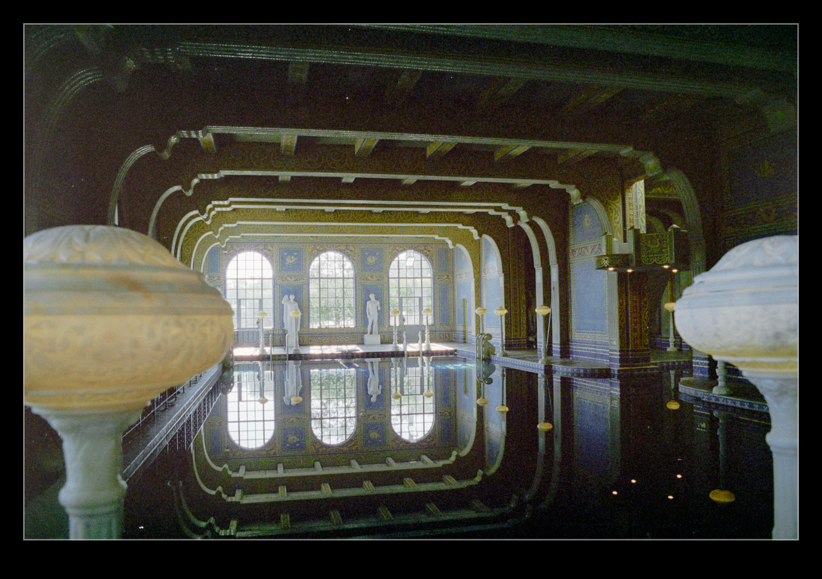 In a recent post, I had images of Hurst Castle. A friend of mine in the US mentioned the similarly named location on the California coast near the city of Cambria. Before we moved to the US, Nancy and I had made a trip to California during which we did a tour of the place. Built by William Randolph Hearst, this place is a combination of so many influences. Much of the decoration was accrued during travels around the world. You have elements of ancient buildings, parts of monasteries, designs influenced by other places and random designs that appealed.