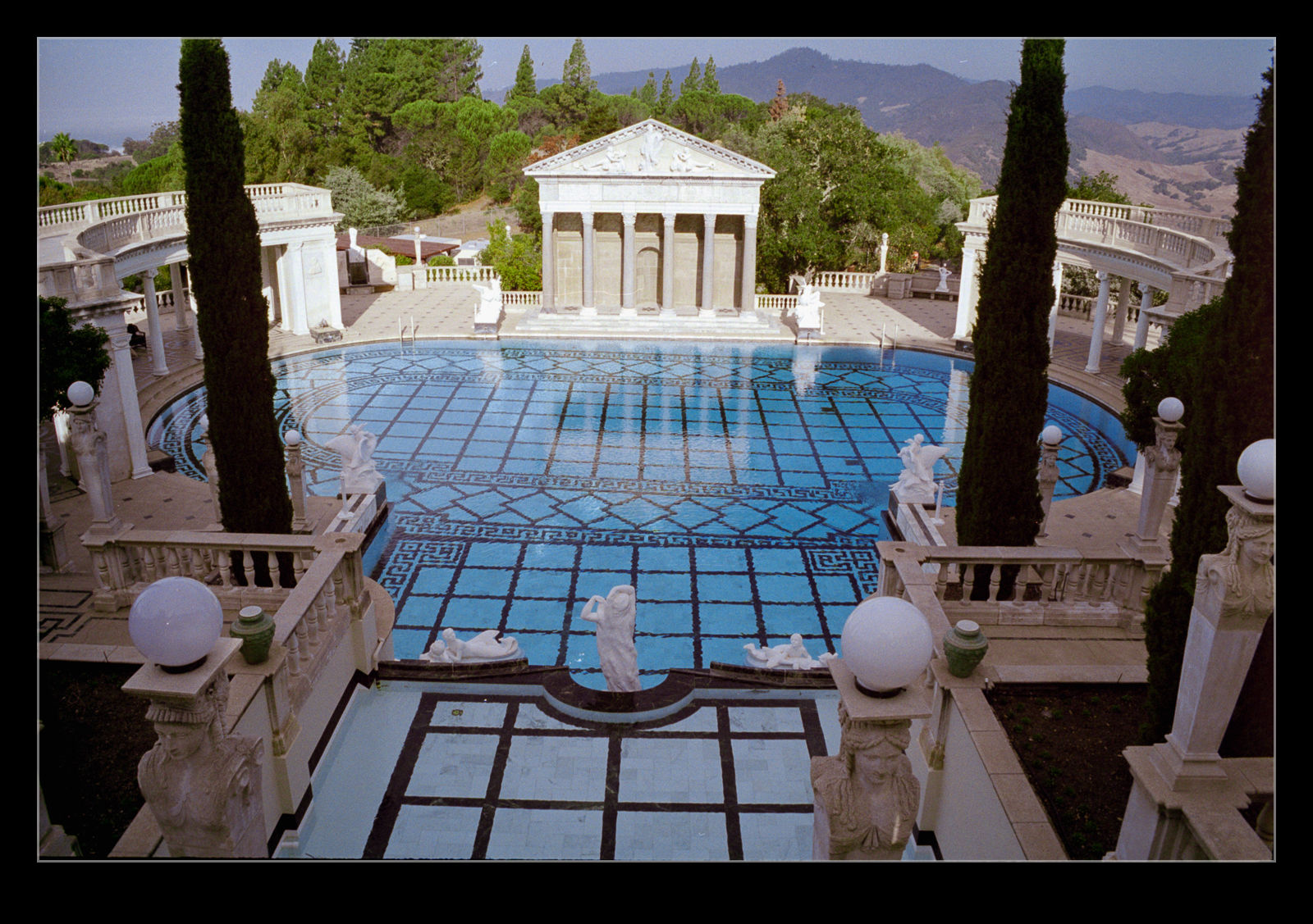 In a recent post, I had images of Hurst Castle. A friend of mine in the US mentioned the similarly named location on the California coast near the city of Cambria. Before we moved to the US, Nancy and I had made a trip to California during which we did a tour of the place. Built by William Randolph Hearst, this place is a combination of so many influences. Much of the decoration was accrued during travels around the world. You have elements of ancient buildings, parts of monasteries, designs influenced by other places and random designs that appealed.
