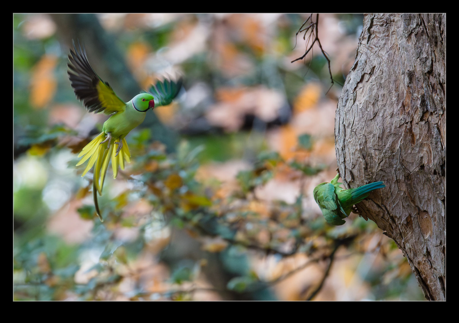 It used to be that I thought parakeets were to be found in a park in London. They seem to have been quite effective at surviving and thriving in the UK and now they seem to crop up all over the place. I have seen them out near Heathrow and in Bushy Park. Richmond Park has had them for a long time, I think. They do provide a flash of colour in the south of England, but they are not a quiet bird. Their call is piercing, and they seem to be calling all of the time.