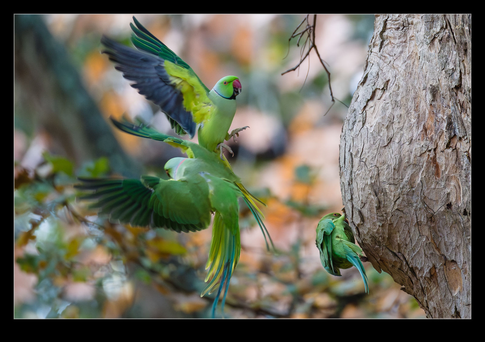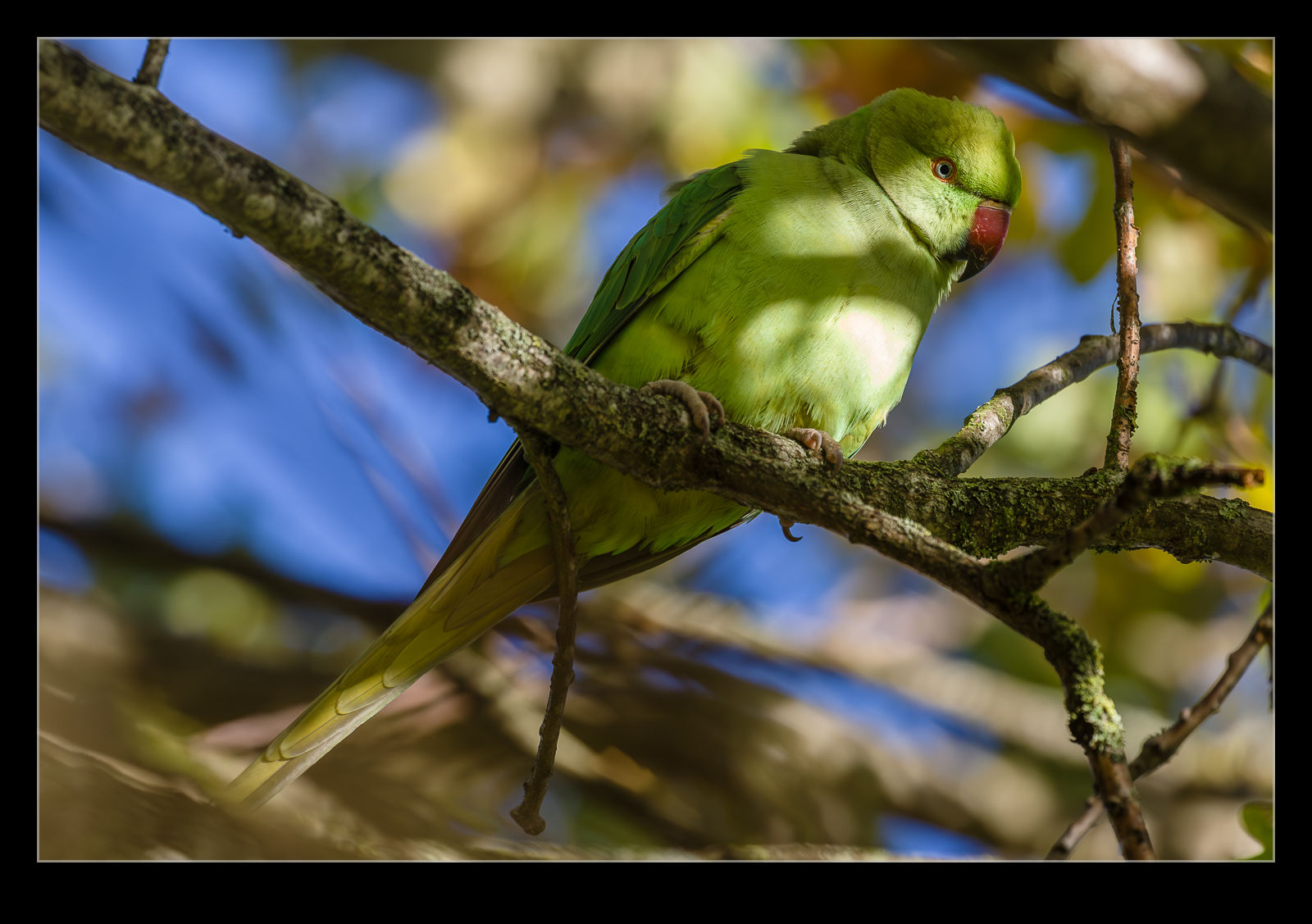 It used to be that I thought parakeets were to be found in a park in London. They seem to have been quite effective at surviving and thriving in the UK and now they seem to crop up all over the place. I have seen them out near Heathrow and in Bushy Park. Richmond Park has had them for a long time, I think. They do provide a flash of colour in the south of England, but they are not a quiet bird. Their call is piercing, and they seem to be calling all of the time.