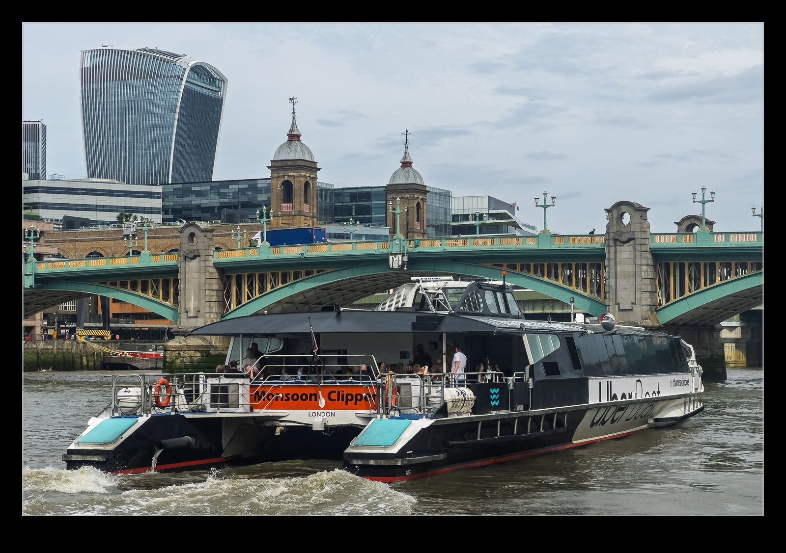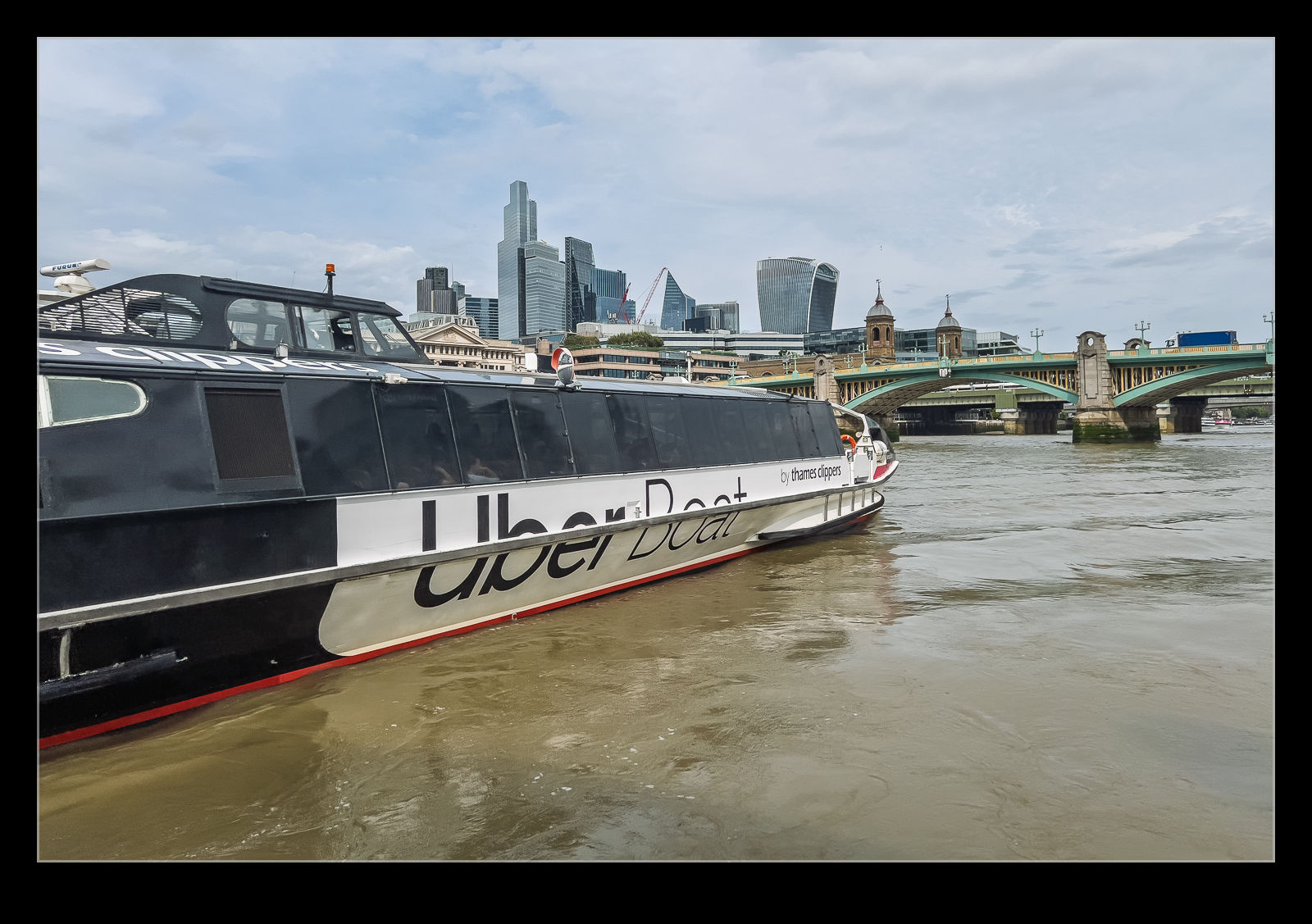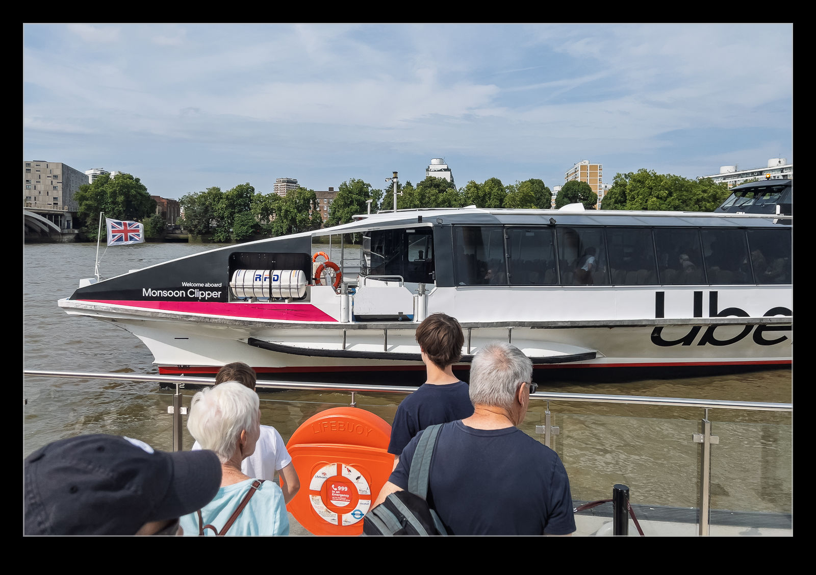 During some previous visits, I had seen the Thames Clipper/Uber ferries running up and down the river. They seemed to be pretty powerful beasts as they fought the strong currents that the Thames can produce. However, I never used them myself. I finally got around to using one recently. We had been down to Battersea and decided to take the ferry back towards the station rather than retrace our steps on the Tube.