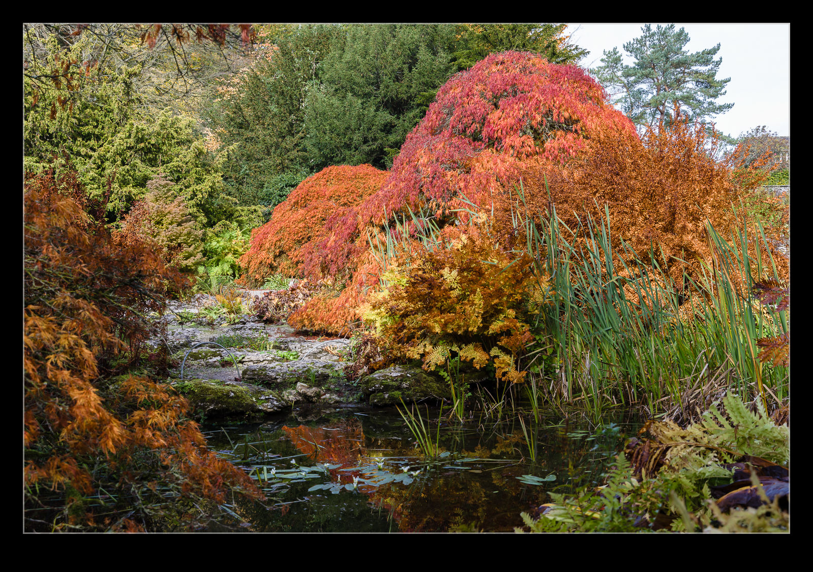 Back near the house was a more structured garden. This included a lot of acers, and, at this time of year, they had turned a delightful colour. One of the staff at the entrance had said they shouldn’t be missed and he wasn’t wrong. I was glad I had brought along my polariser. I have no idea why I hadn’t made the effort to visit previously but that omission is now rectified.