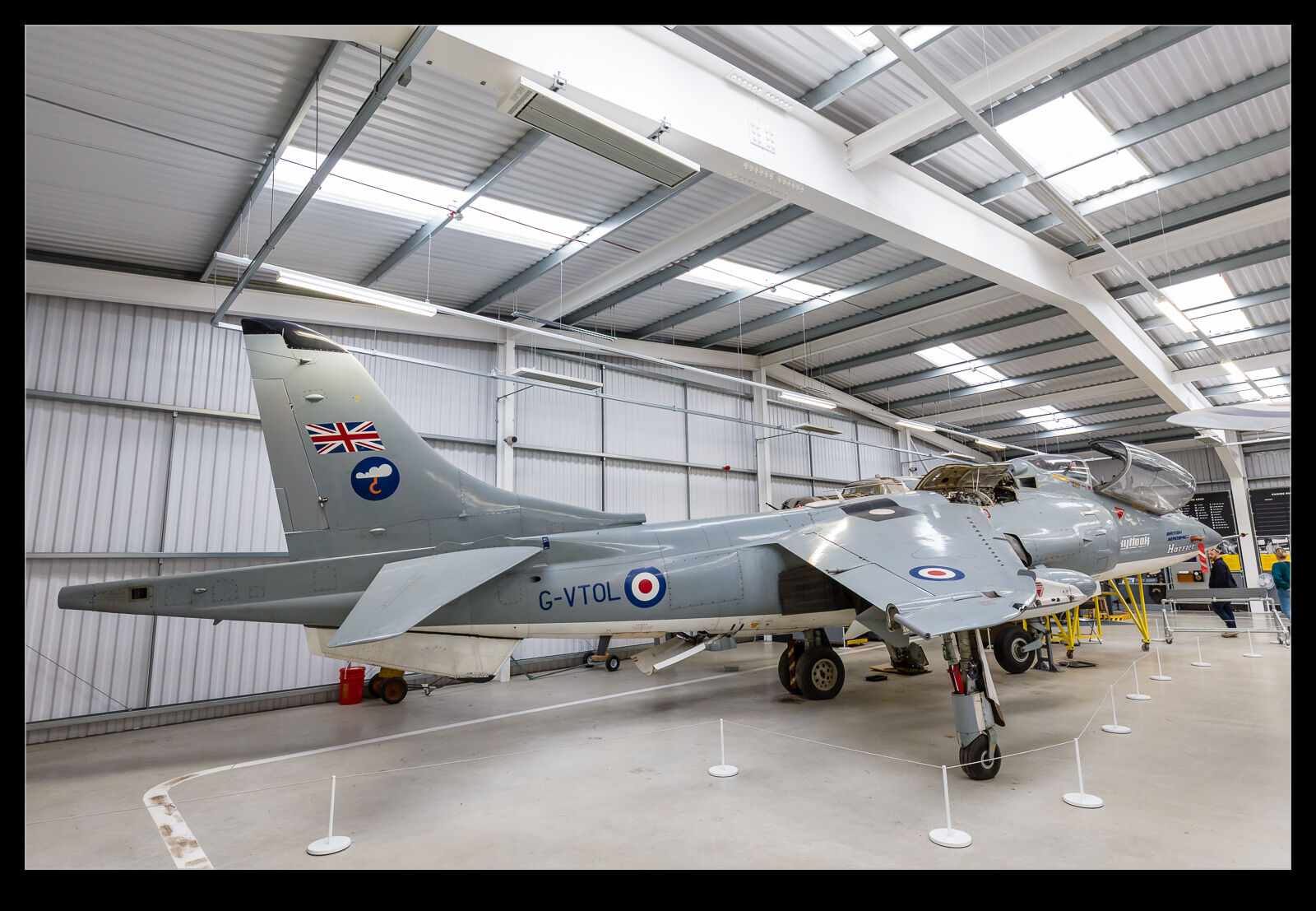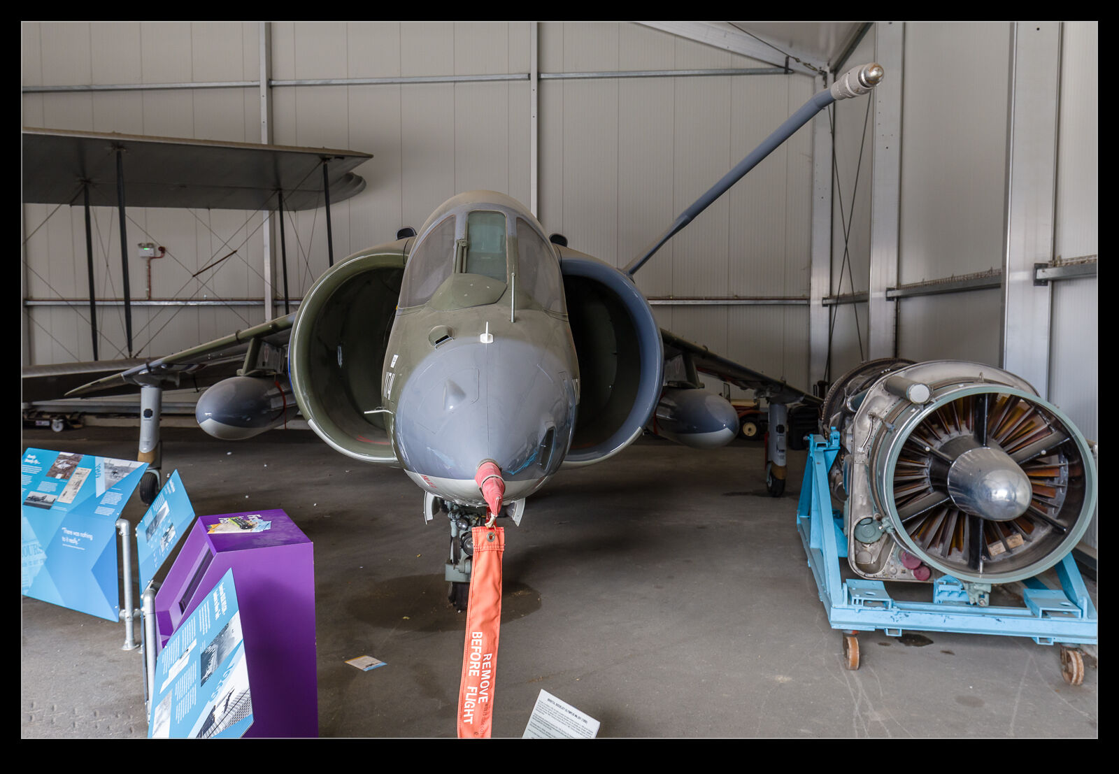 Then there is a Harrier GR1. Unusually it is fitted with the extended wingtips which provided a little extra fuel and a slight reduction in drag. The reason the plane is fitted with them is that it is one of the airframes that took place in the Transatlantic Air Race and won. It is surrounded by some displays of the race and the competitors it defeated – most importantly the Royal Navy!