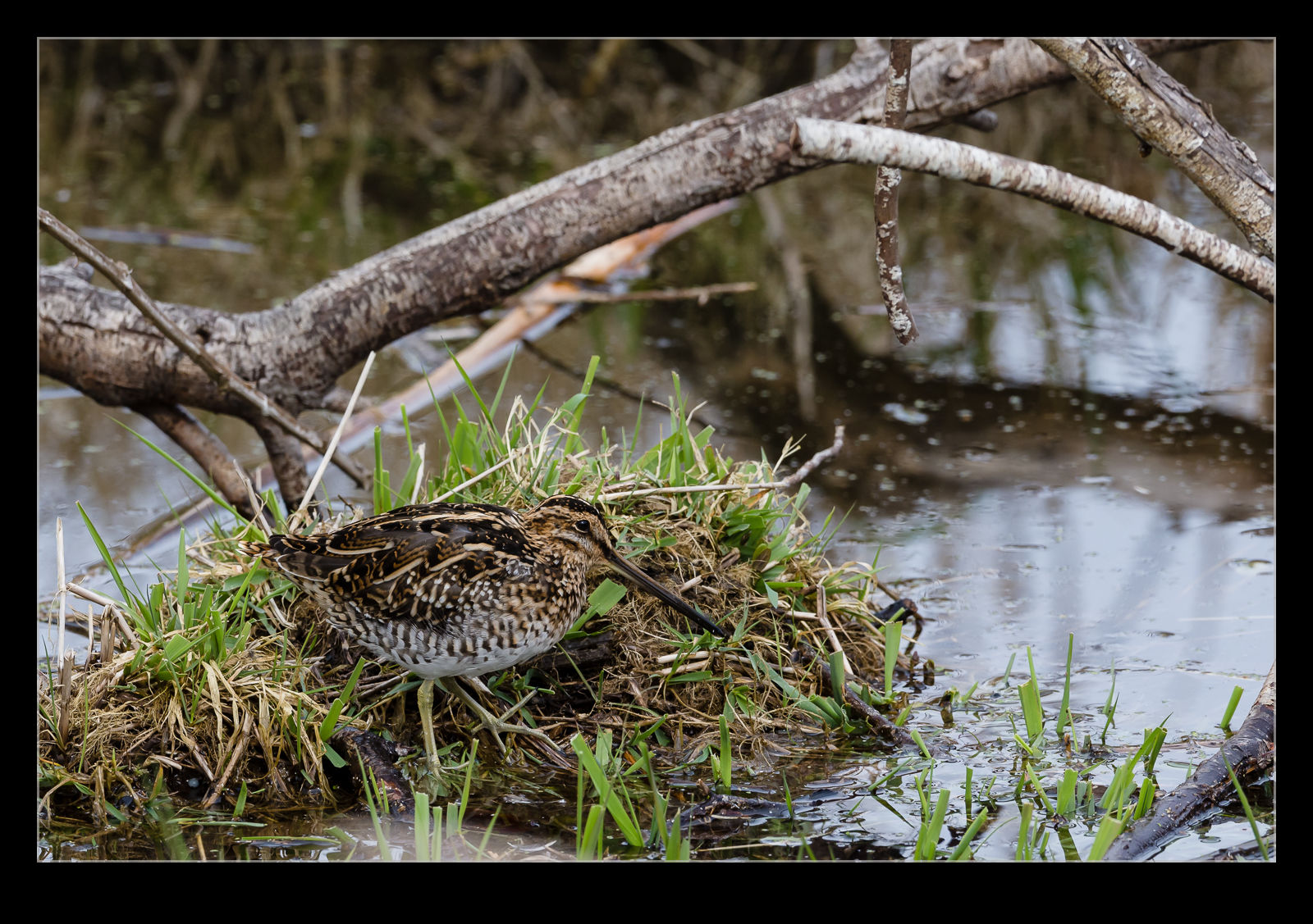 I am not a bird expert so, while I can recognize a variety of different birds, there are plenty that I have absolutely no clue about. However, Juanita Bay is a popular spot with the ornithologists and I can learn a bit from them. A couple was chatting with me on one of the boardwalks about Wilson’s Snipes. They thought they could see them on one of the shoreline areas but couldn’t be sure. I bumped in to the same people on the other side of the shore and they confirmed that the snipes were there.