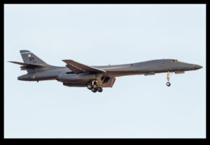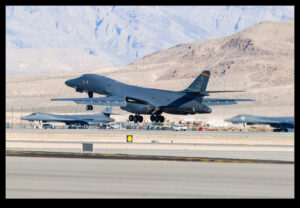 A USAF B-1B Lancer on final approach to Nellis AFB Las Vegas Nevada as part of a Red Flag mission.