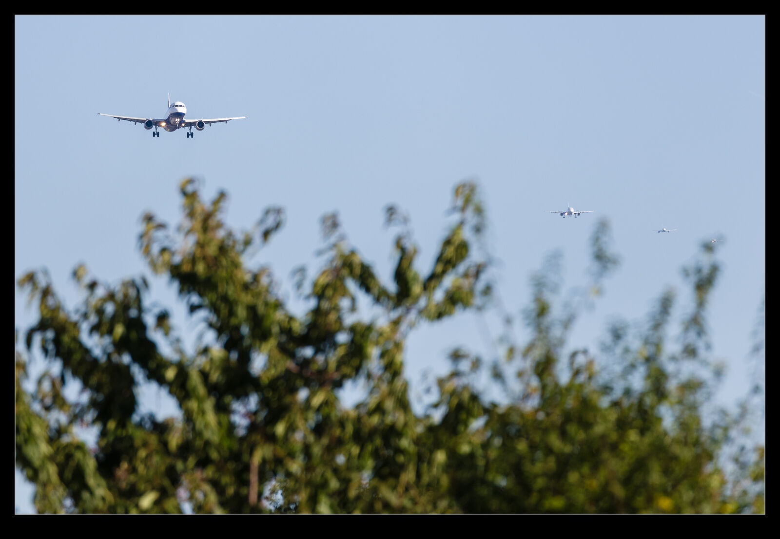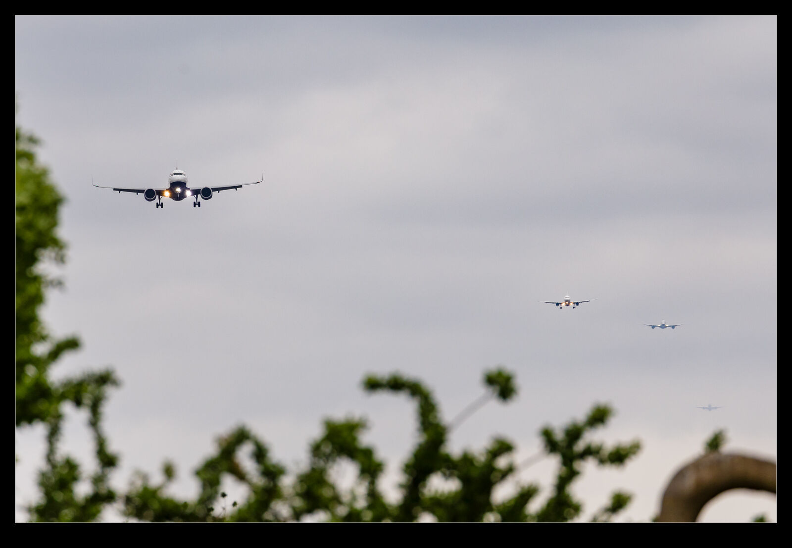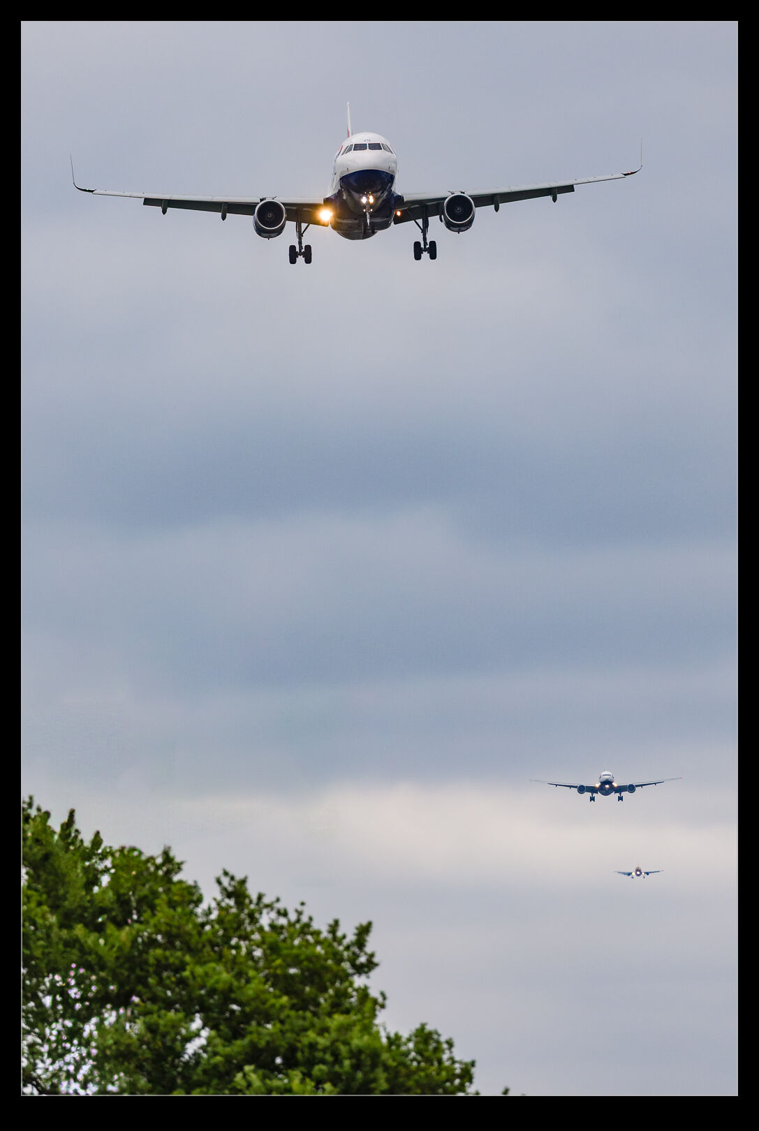 Back to a time earlier this year when I made a trip to Heathrow for a brief bit of shooting. Most of the time, I was offset from the approach path to get shots of the jet as they were on short final approach. However, I did walk along to the approach lights to get some head on shots. While there were more about getting a tight angle on the jets and some underside shots, it did also allow me to look back up the approach and see a number of jets on the glideslope or turning to line up. Heathrow is a busy place so there always seem to be jets on approach.