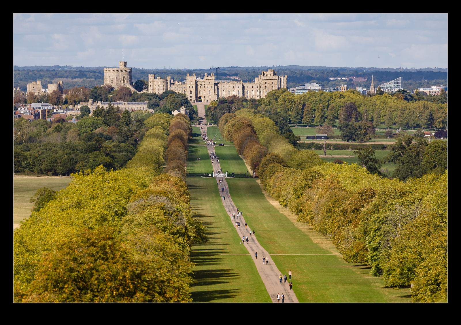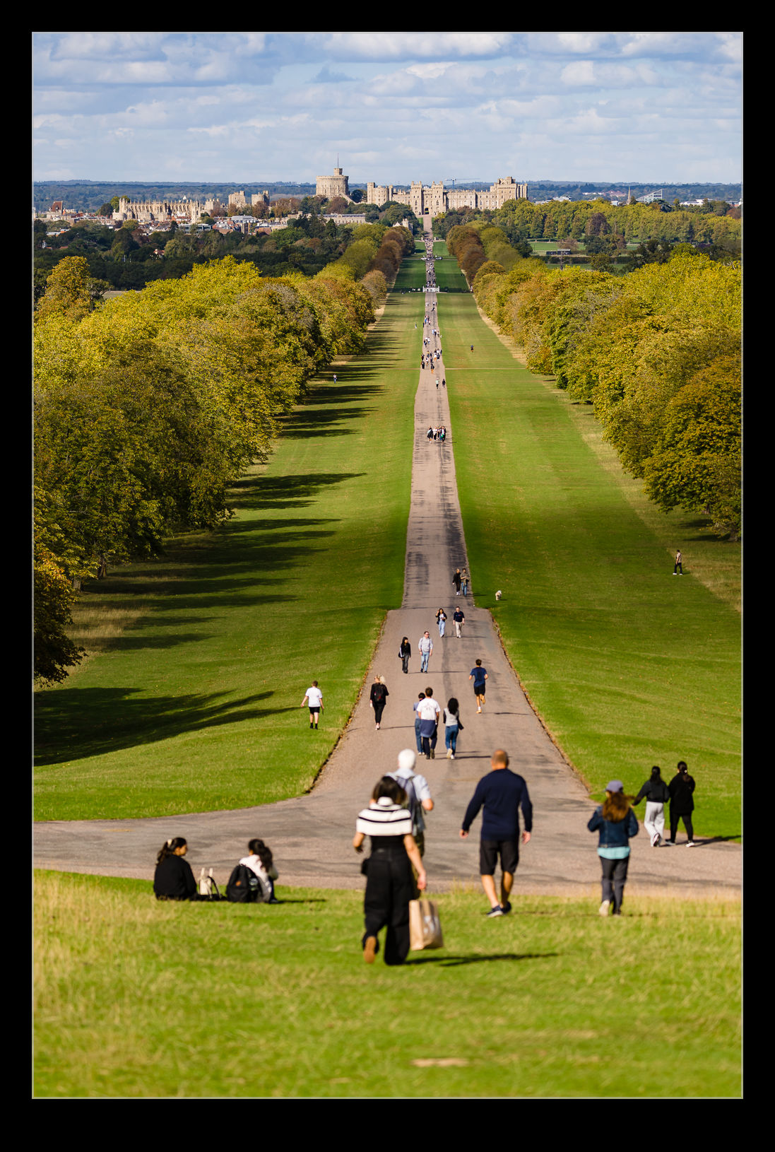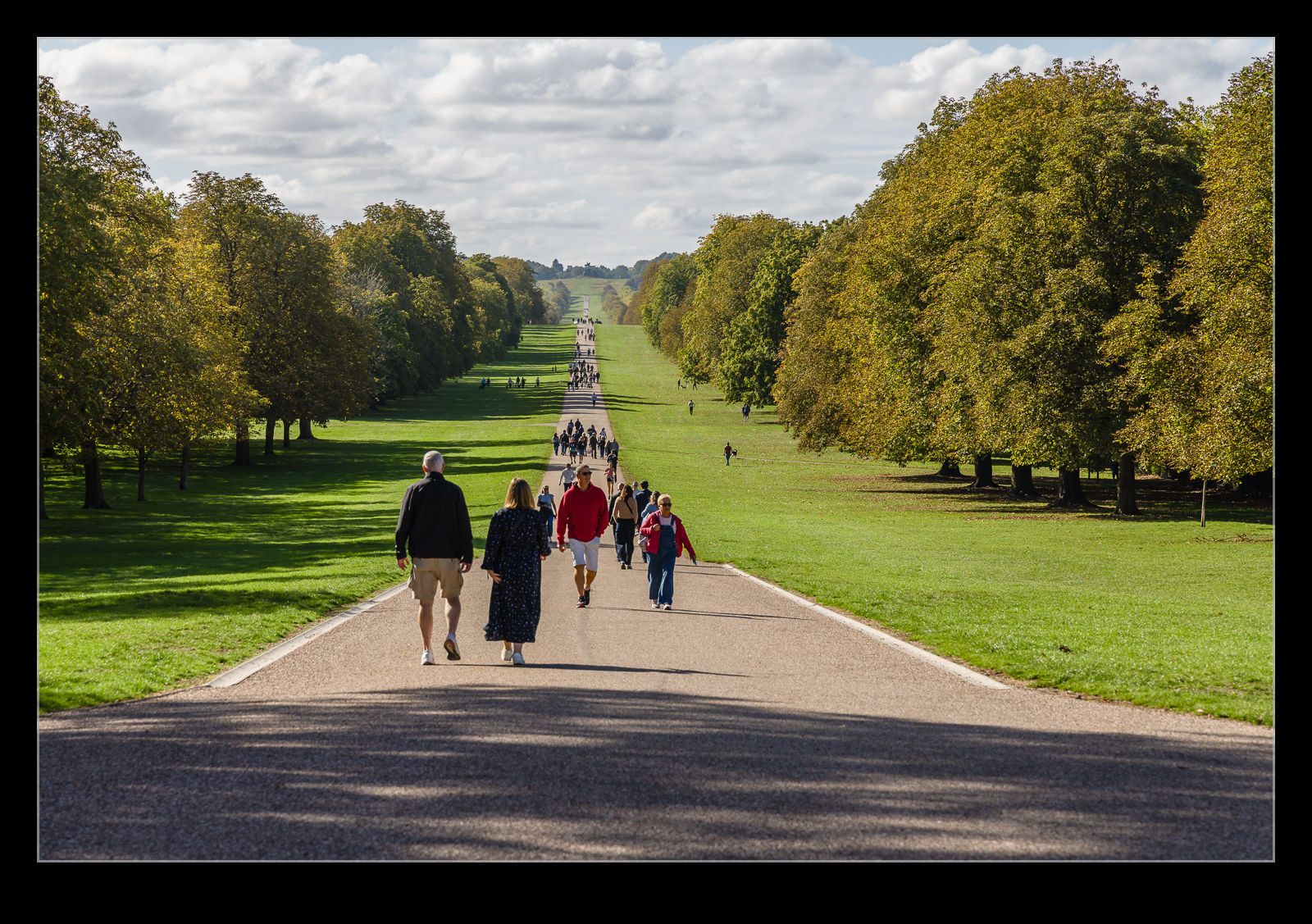 Windsor Great Park has a long, straight road that aligns with the castle, known as the Long Walk. We started our day out in Windsor itself and walked around the castle to the beginning of the Long Walk. I took some photos looking out into the park with the many people walking up the road. However, we weren’t going to join them yet.